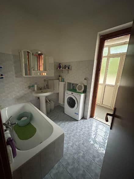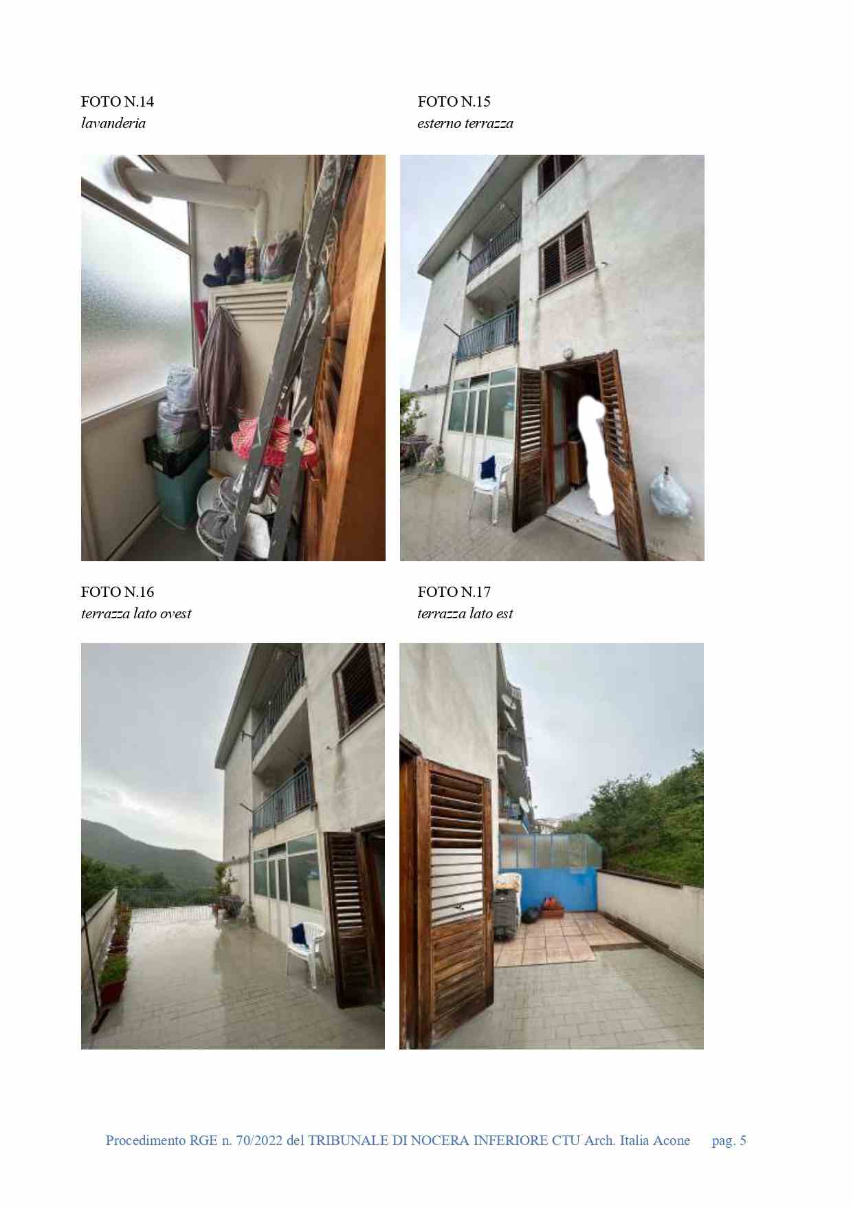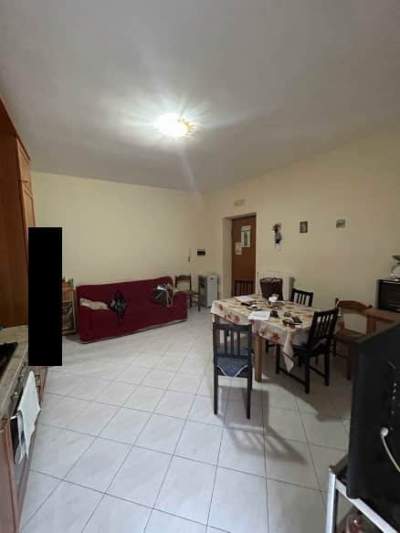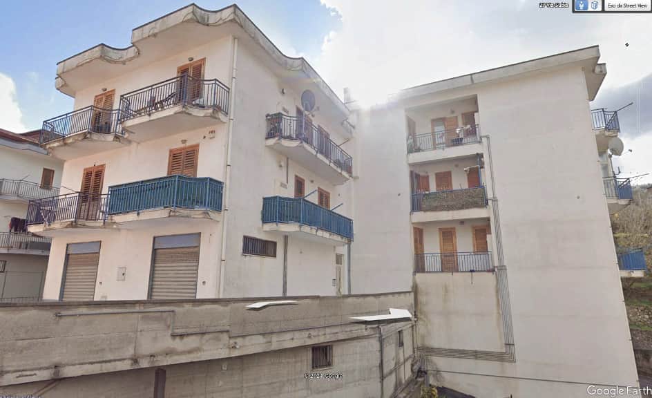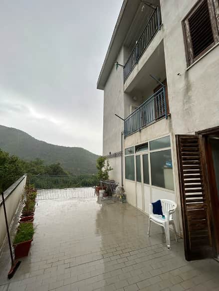 Appartamento al piano rialzato (catastalmente piano terra), interno 2, con accesso dalla seconda porta a destra per chi dall’androne sale la rampa di scale che conduce al piano, di ca mq 65, oltre ampia terrazza esposta a sud di mq 56 e terrazzo ad ovest di mq 4, composto da due vani utili, cucina-soggiorno, camera da letto, disimpegno, servizio igienico con locale lavanderia. Posto auto pertinenziale di ca mq 10, situato in area sottoposta alla quota stradale