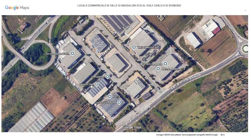 Piena ed intera proprietà di locale commerciale al piano terra facente parte di un Centro Servizi Consortili ubicato in Valle di Maddaloni (CE) al Viale Carlo III di Borbone; si articola in un’area bar con annessa sala preparazione, wc e anti wc per il personale, sala avventori con relativo wc e anti wc, e wc disabili, della superficie commerciale complessiva di circa 174,00 mq