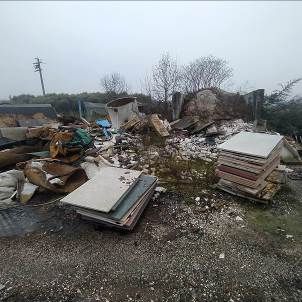 Piena proprietà di complesso immobiliare composto da 2 capannoni, uffici, sale mostre, magazzini, laboratorio, locali accessori e 2 unità abitative (sup. 168 e 186 mq). Identificazione catast. come da Avviso. Unità immobiliare sub10 risulta occupata da persone e sarà liberata a cura della Procedura. Difformità regolarizzabili e non, Vincoli e oneri, il tutto come da Perizia. Presenza di amianto e ingenti quantitativi di rifiuti. Il costo di smaltimento dei materiali sarà a carico dell'acquirente