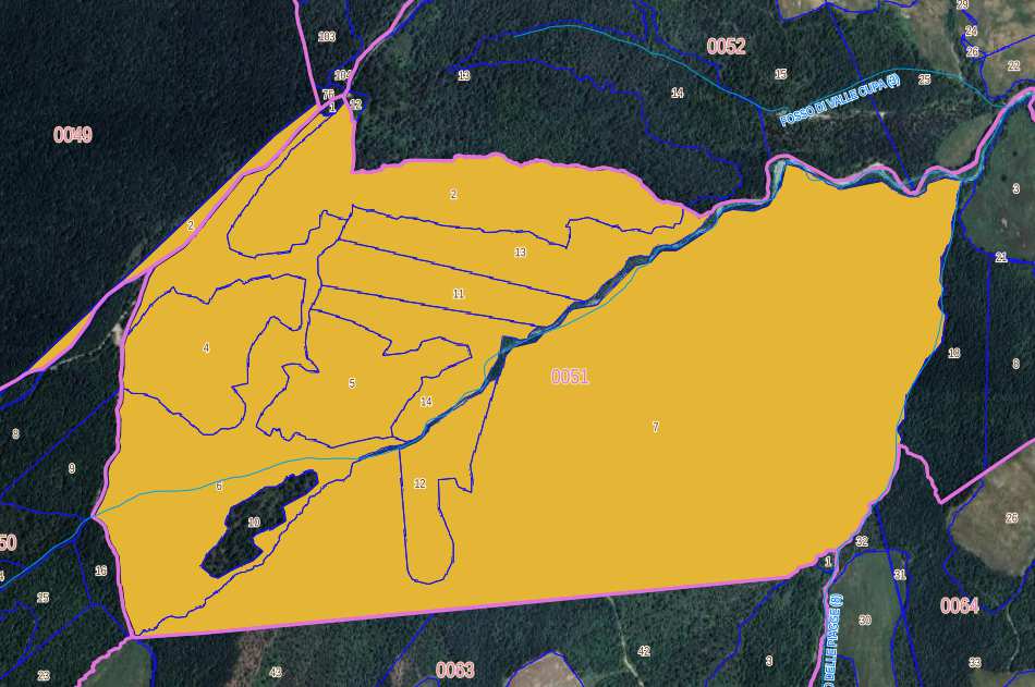 Quota di proprietà pari all’intero, del complesso immobiliare rappresentato da un terreno boschivo dotato di fabbricato diruto potenzialmente recuperabile a fini abitativi ubicato in località Podere Il Seccheto, nel comune di Piancastagnaio (SI).