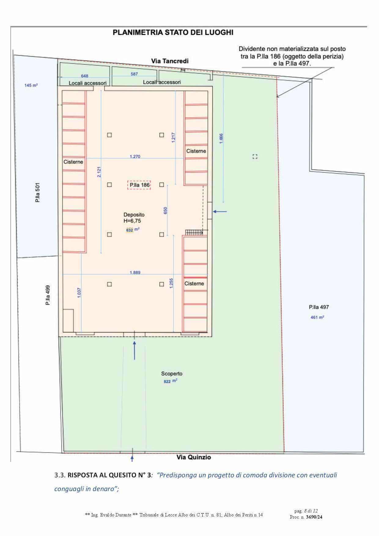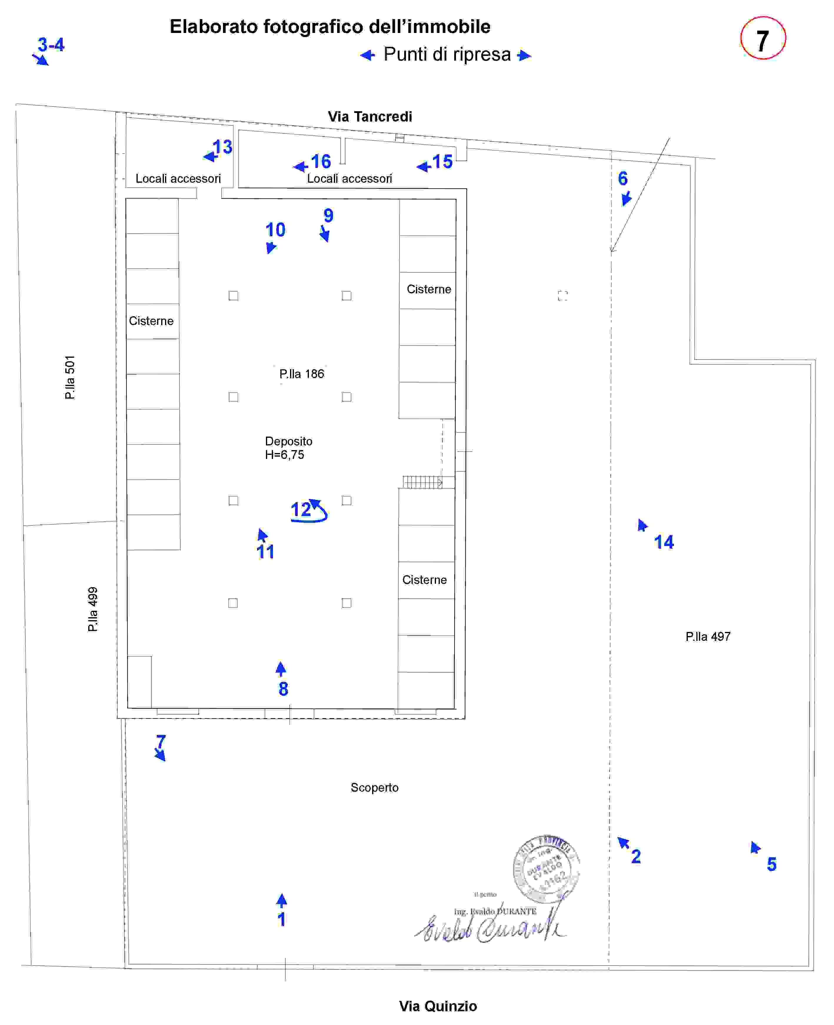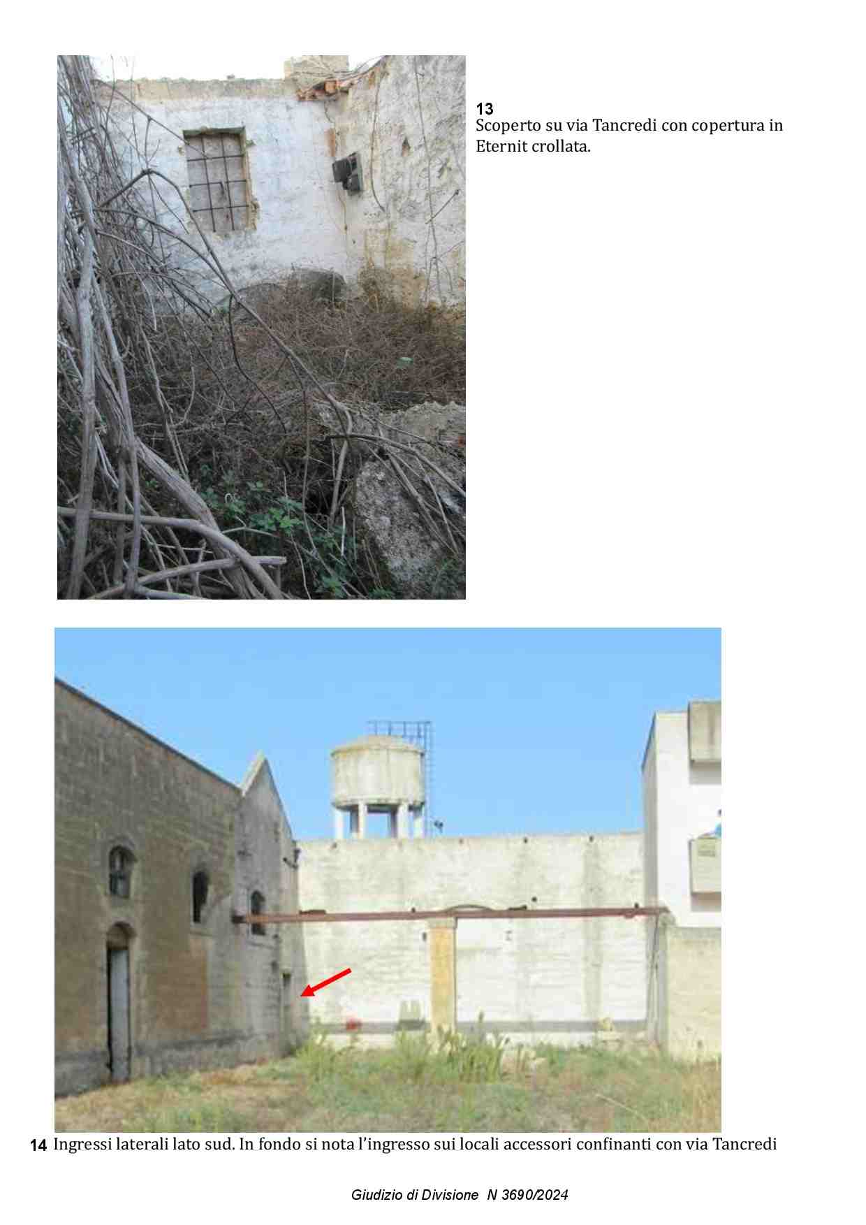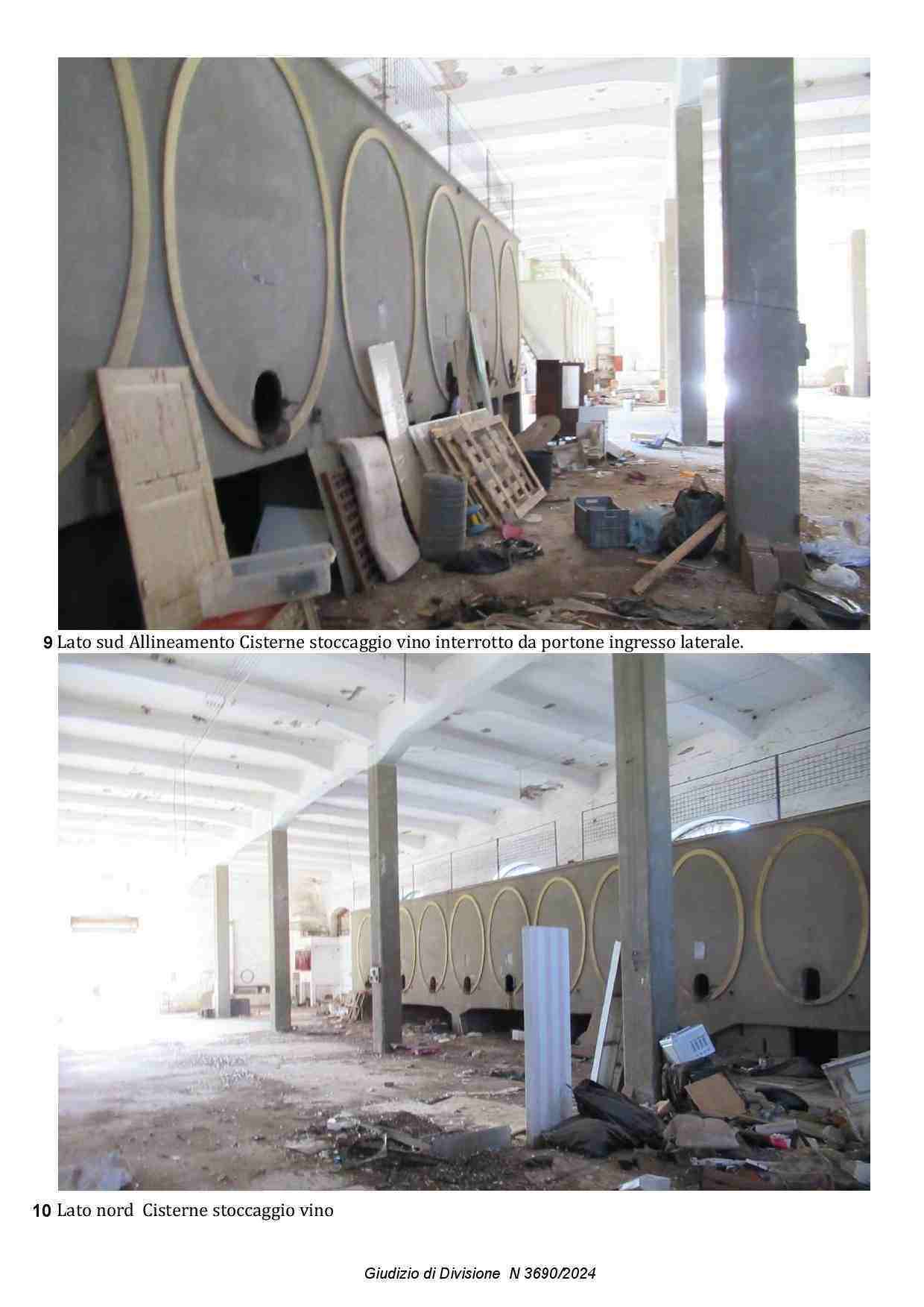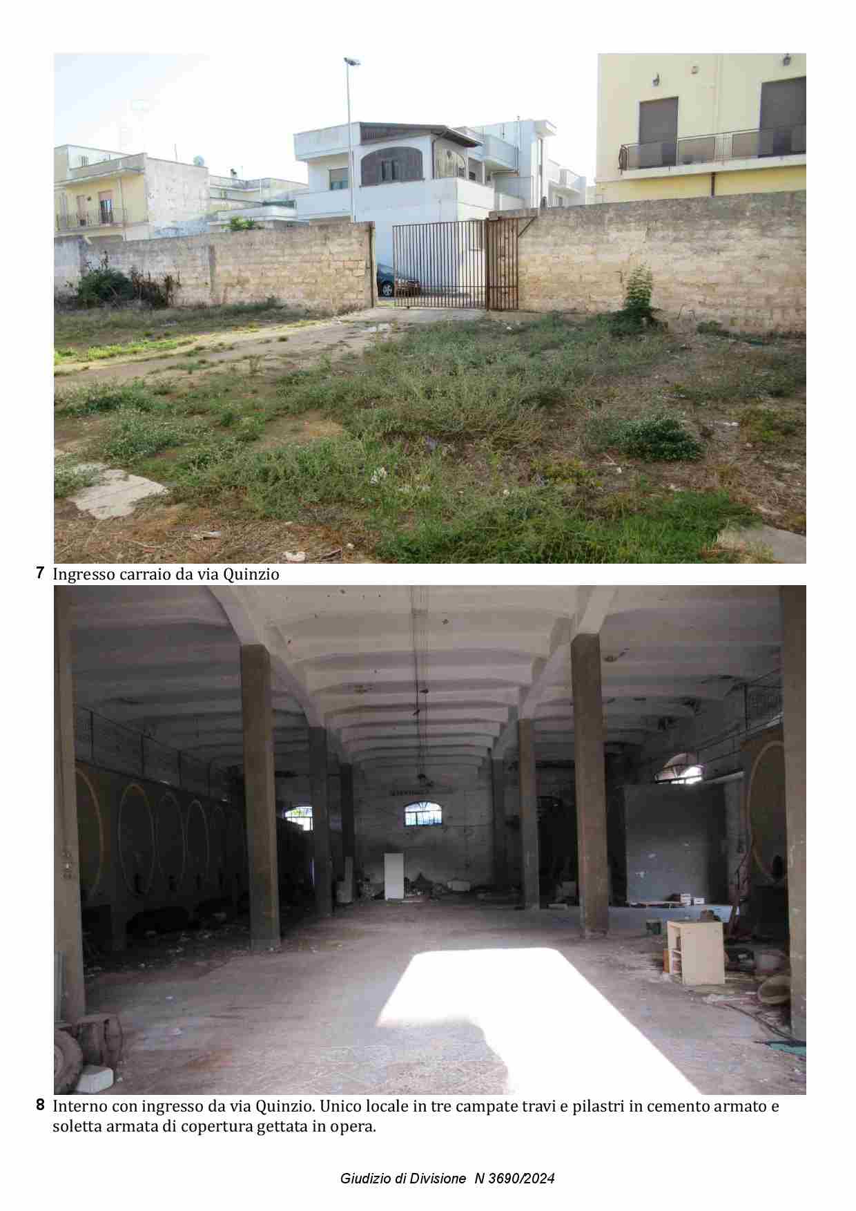 Composto da locale principale a tre campate, con travi in cemento armato e copertura piana, un tempo destinato a stabilimento vinicolo e dei locali accessori di cui uno con accesso diretto dal locale mentre l’altro con accesso diretto dallo scoperto laterale di pertinenza. La copertura di questi locali accessori versa in pessime condizioni e per di più parte di essa è stata realizzata in Eternit. Si sviluppa una superficie lorda complessiva di circa mq 1754.