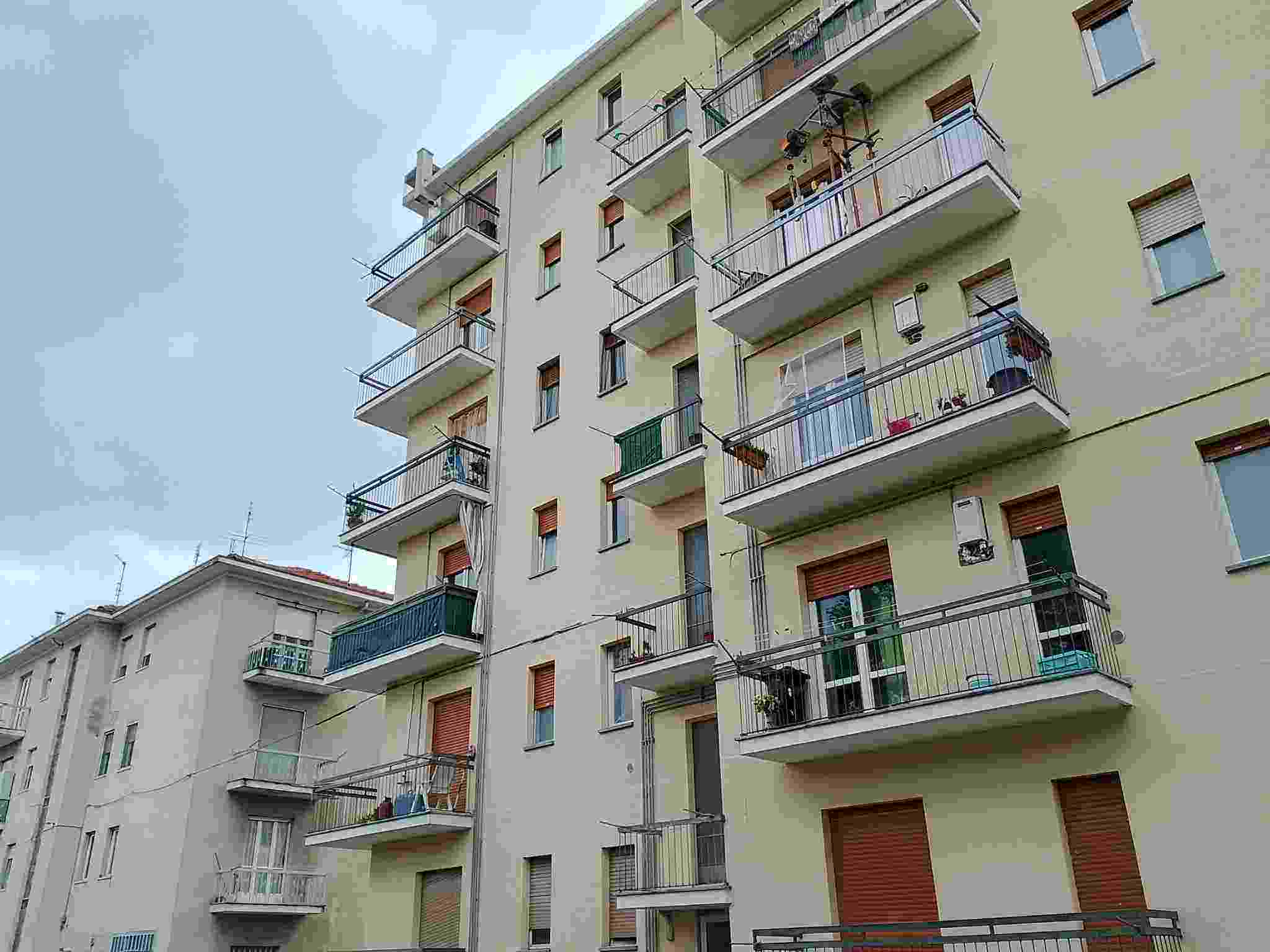 Alloggio al piano terzo (quarto fuori terra) composto da ingresso, tre camere, cucina, bagno e ripostiglio, cantina al piano seminterrato e autorimessa al piano terreno