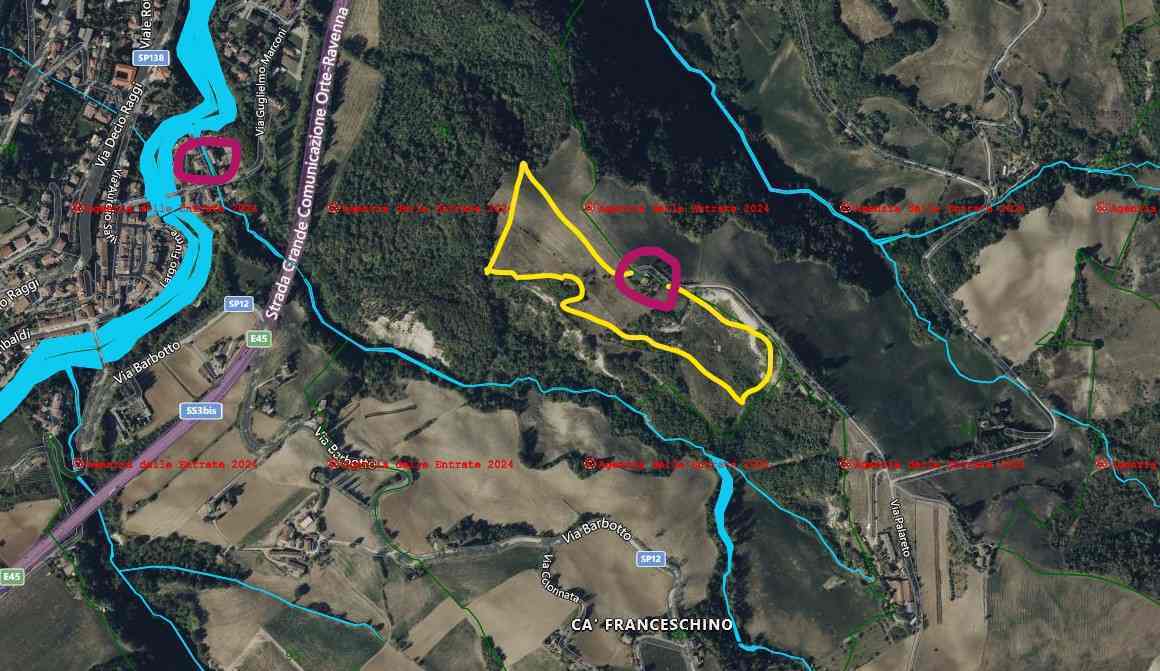 Piena proprietà per l'intero di una unità immobiliare a destinazione abitazione con annessi fabbricati a servizio del fondo agricolo nonché appezzamento di terreno agricolo a Mercato Saraceno (FC) in via Palareto 1273 (indicata sulle mappe di Google come località “Cà Monte”, sita alla fine di “Via Rontagnano Pianetto”). Libero