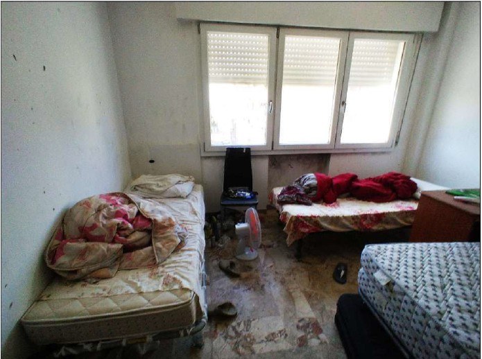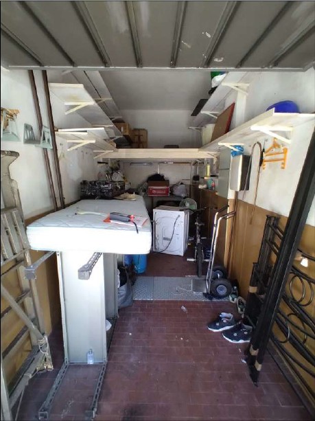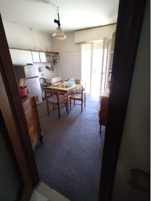 Appartamento al terzo piano di condominio dotato di ascensore, interno n. 7; composto da ingresso, ripostiglio, cucina con poggiolo, n. 2 camere, bagno, disimpegno e soggiorno, oltre a garage al piano terra. Si evidenziano le cattive ed in alcuni casi pessime condizioni dei soffitti e delle pareti, oltre alle cattive condizioni delle finiture in genere. Il garage può considerarsi in condizioni sufficienti, con portone basculante in lamiera ad apertura manuale.