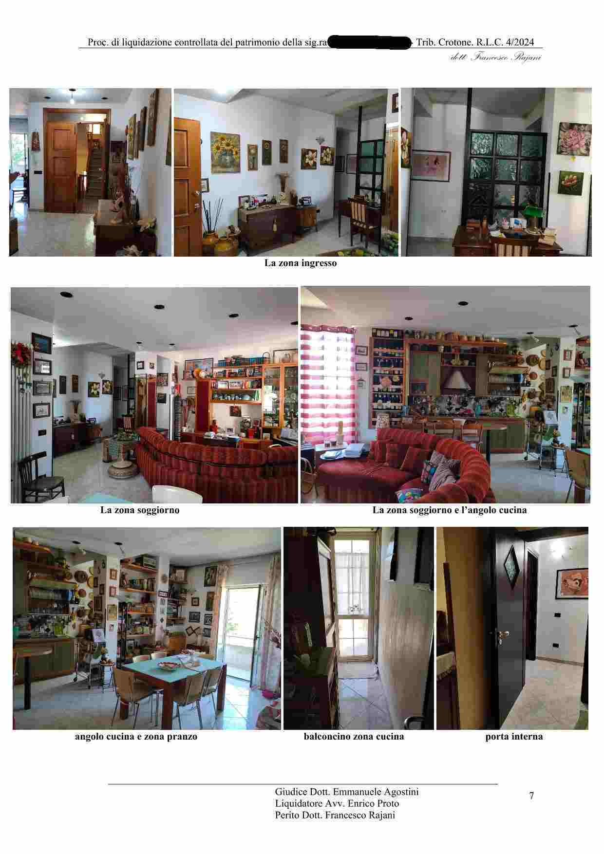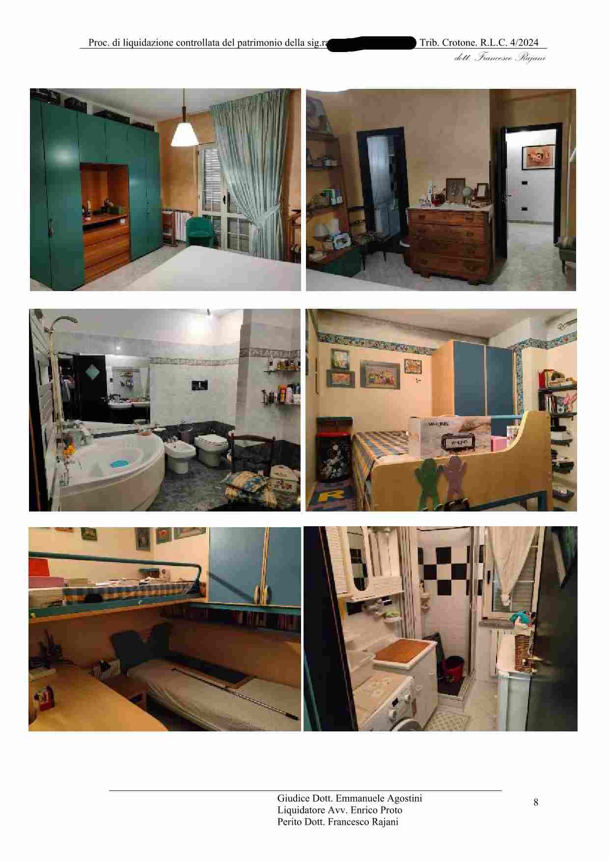 Piena proprietà di appartamento al 2 piano (3 f.t.) di un fabbricato dotato di corte pertinenziale in Cotronei alla via Salvatore Baffa, n. 135, con annesso magazzino garage al piano terra dello stesso fabbricato, entrambi censiti al Catasto Fabbricati di Cotronei, l’appartamento al foglio 13, particella 1090, sub. 7 categoria A 3, piano 2, vani 6, rendita: 325,87 e il magazzino al foglio 13, particella 1090, sub. 4, categoria f 3, p.t., rendita: zero, ed altresì con annesso cortile pertinen