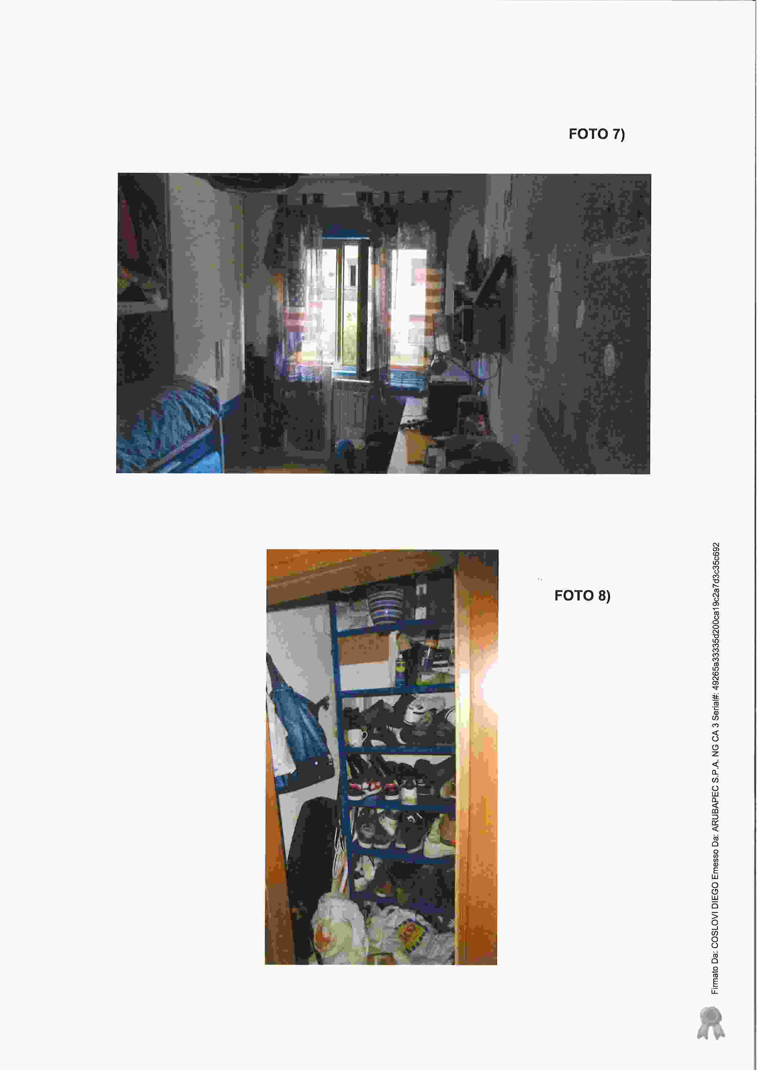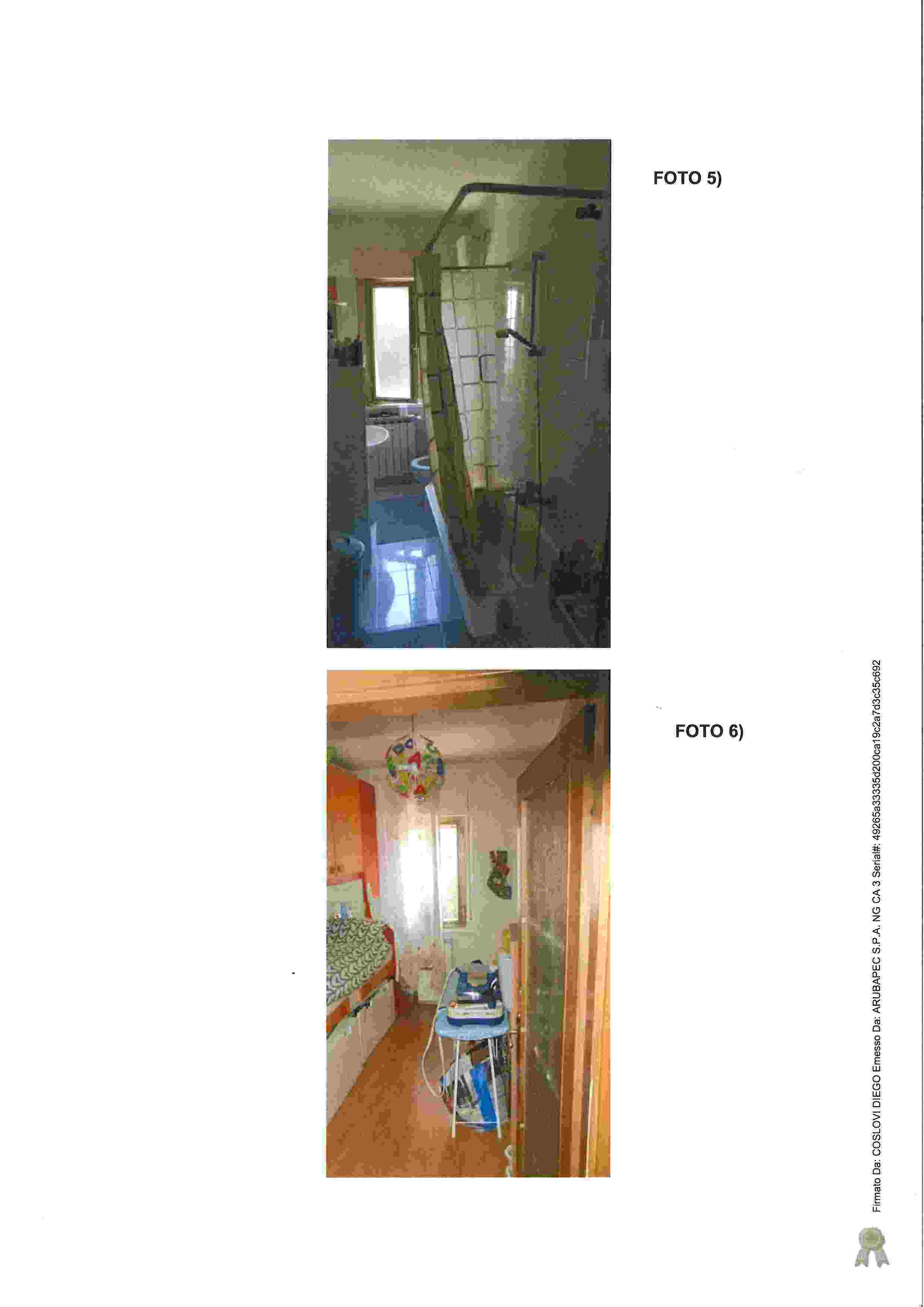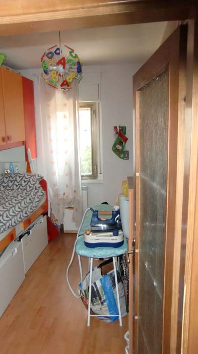 Appartamento al primo piano in condominio del 1969 composto da ingresso, soggiorno con angolo cottura, due camere, bagno e ripostiglio unitamente ad una soffitta al piano sottotetto. L’unità è collegata alla rete dell’acqua, gas metano, elettrica e fognaria e l’impianto elettrico è completo dei requisiti minimi di sicurezza. L'impianto di riscaldamento è centralizzato. Serramenti esterni in alluminio anodizzato e sistema oscurante ad avvolgibili. Serramenti interni in legno. Stato di manutenzione buono.