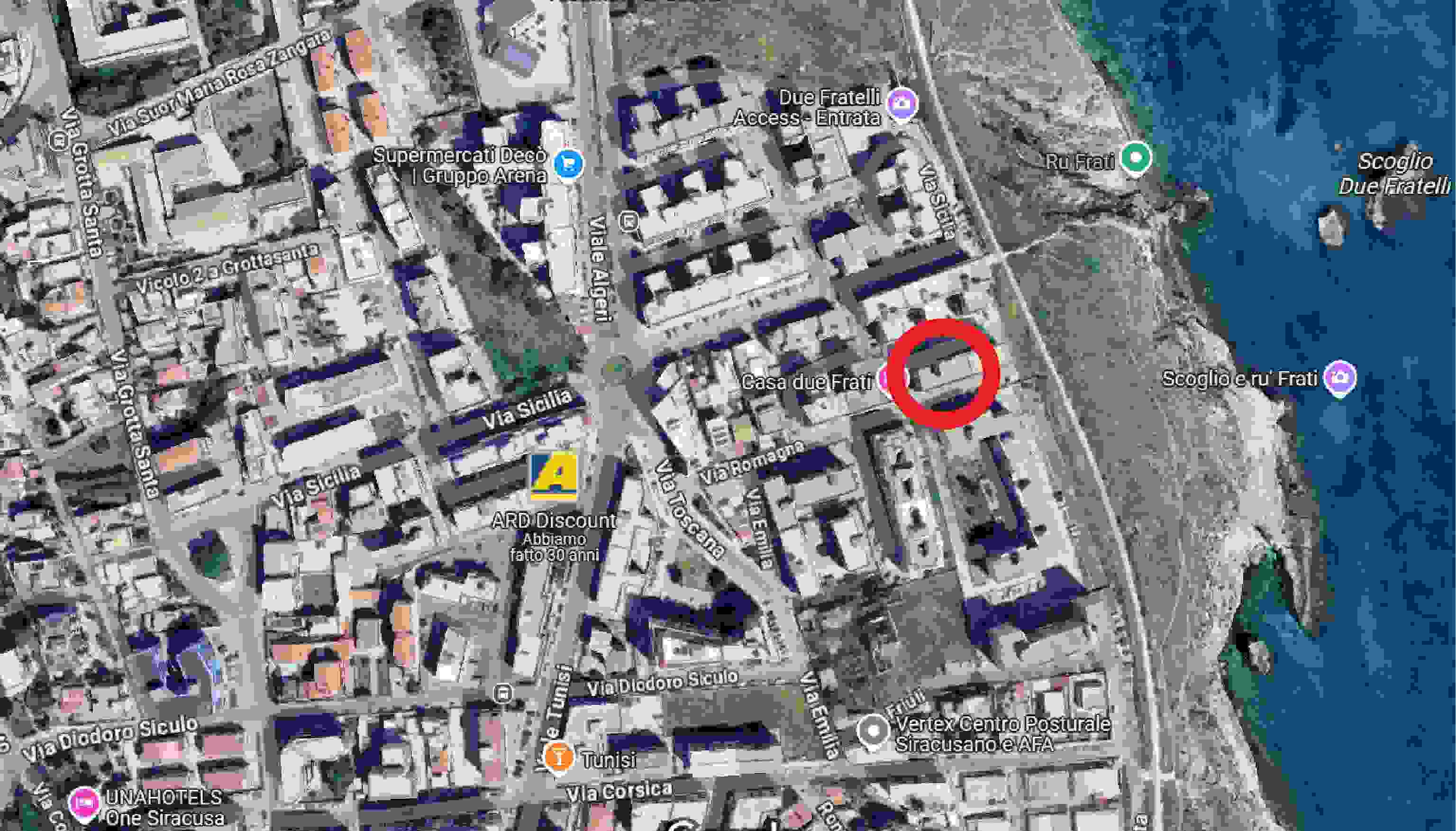Abitazione in appartamento sita a Siracusa in Via Romagna n. 51, piano 3°, interno 6,distinta nel Catasto Fabbricati del Comune di Siracusa al foglio 32, particella 3181, sub 70 (ex foglio 32, p.lla 1581, sub 24), categoria A/3, classe 3, consistenza 7 vani, superficie totale 126 mq, superficie totale escluse aree scoperte 118 mq, rendita catastale Euro 650,74.