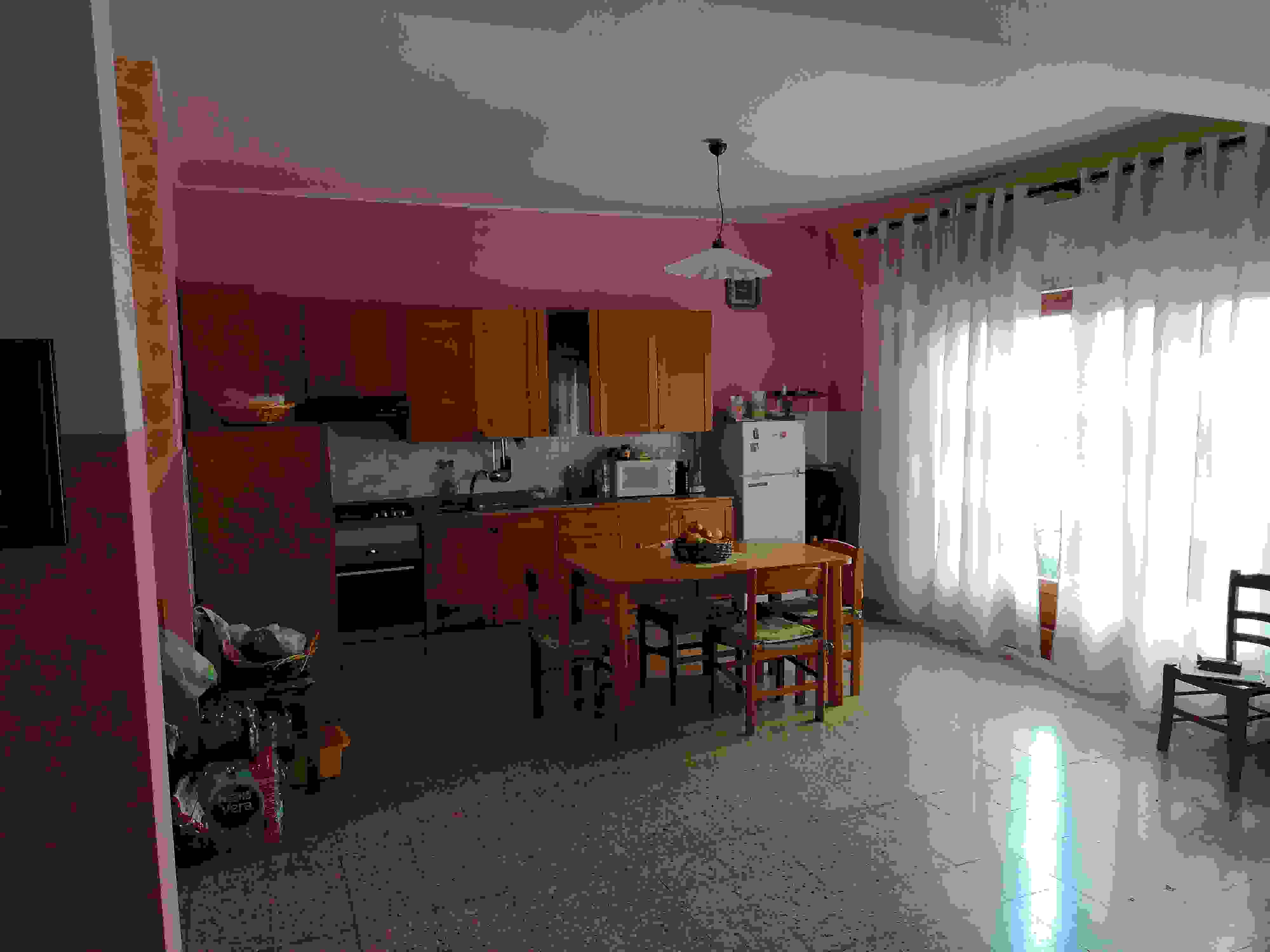 Appartamento di mq. 145 circa posto al piano rialzato (corpo A), composto da ingresso, corridoio, pranzo-soggiorno, cucina, due bagni, ripostiglio e tre camere da letto, oltre magazzino di mq. 91 circa, posto al piano seminterrato (corpo B), costituito da un unico locale adibito ad abitazione, con wc.