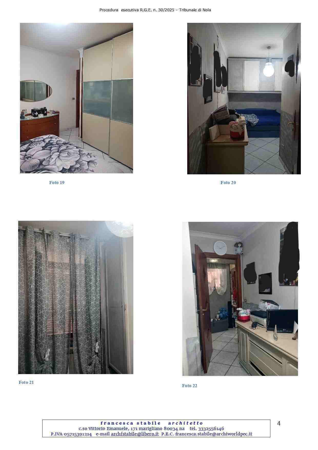 LOTTO UNICO: Piena proprietà di appartamento ubicato in Pomigliano D’Arco (NA) alla Via Masseria Mattiello n.37, posto al piano T-S1 e composto da: soggiorno/cucina e wc al piano sotto-stante e due camere da letto e wc al piano superiore. È riportato al NCEU del Comune di Pomigliano D’Arco al foglio 6, p.lla 719, sub 4, Cat. A/4, classe 4, cons. 4,5 vani, sup. cat. 99,00 mq, R.C. 278,89