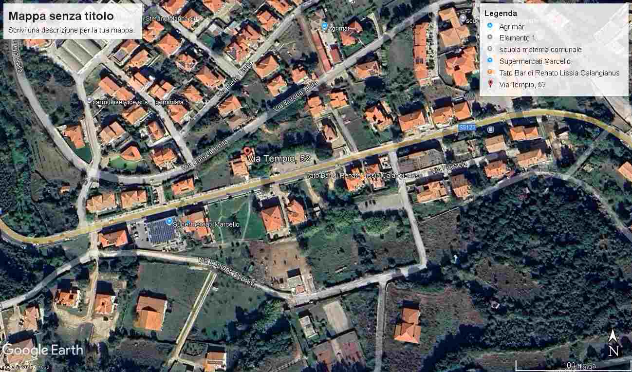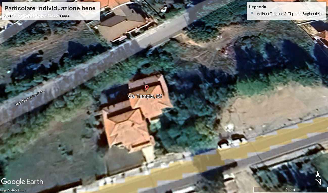 L'unità immobiliare oggetto di vendita è una porzione di una villa bifamiliare libera su tre lati con ampio giardino pertinenziale a cui si accede dalla Via Tempio 52 Calangianus