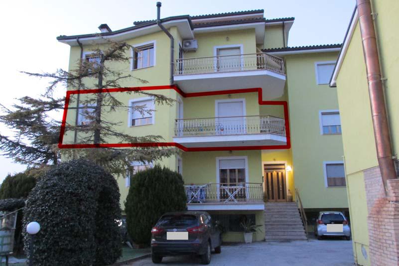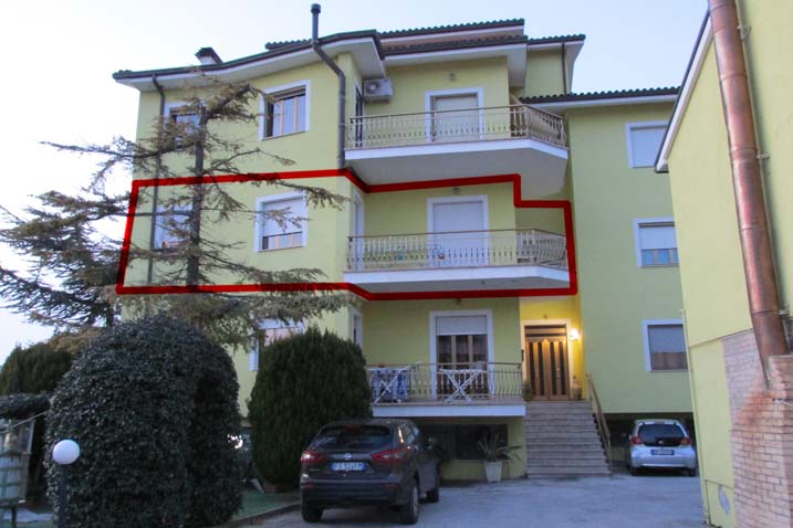 Diritti di piena proprietà (1/1) di immobile sito a Montegranaro - trattasi di abitazione al Piano 1° e di una soffitta al Piano 3°, oltre un garage esterno al fabbricato. L’abitazione si compone di ingresso, cucina, ampio soggiorno, disimpegno notte, una camera matrimoniale, due camere e doppi servizi, per un totale di circa mq 154 lordi ai quali si aggiungono n. 3 balconi di circa mq 21 totali.
