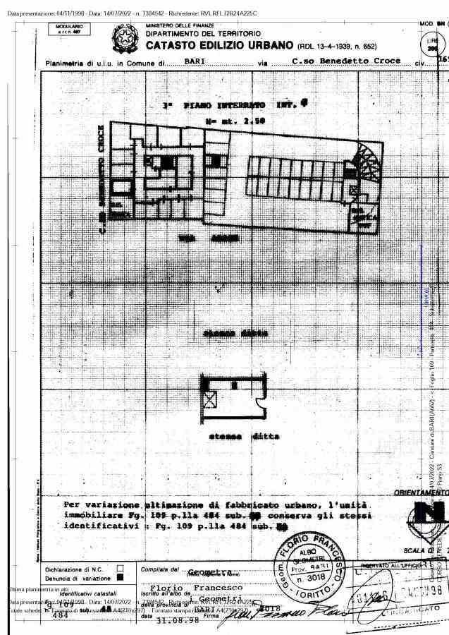 Piena e perfetta proprietà della cantina, della superficie di 20 mq circa, posta al piano terzo interrato di un maggior fabbricato residenziale, avente accesso da un portone posto sul Corso Benedetto Croce n. 165.