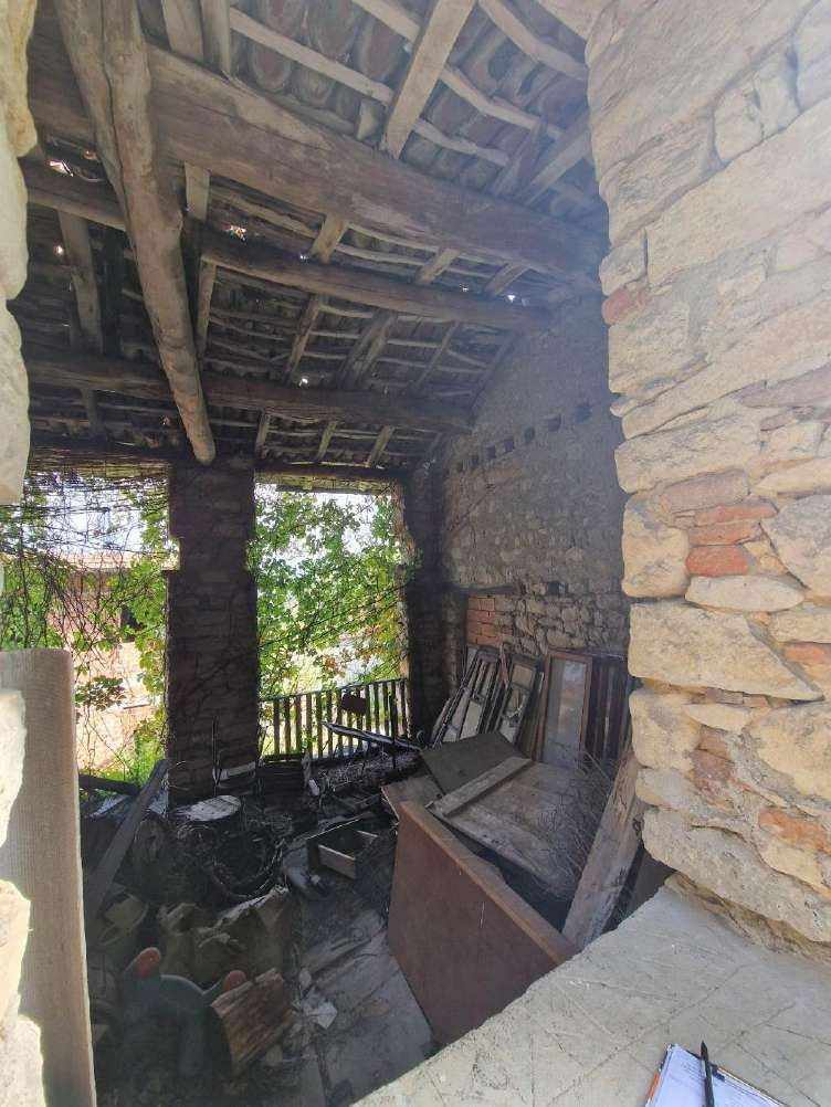 Proprietà di un’immobile abitativo e di un fabbricato ex rurale. L’immobile a uso abitativo, su tre livelli, risulta composto da: ingresso e cantine al piano terra; cucina, soggiorno, ripostiglio, W.C al primo piano; tre camere da letto al secondo piano. Il fabbricato ex rurale, su due livelli fuori terra, è composto al piano terra da un locale adibito a deposito; al piano primo da un ulteriore ambiente a uso deposito/ex fienile, accessibile tramite scala a pioli