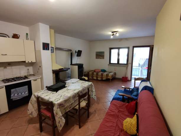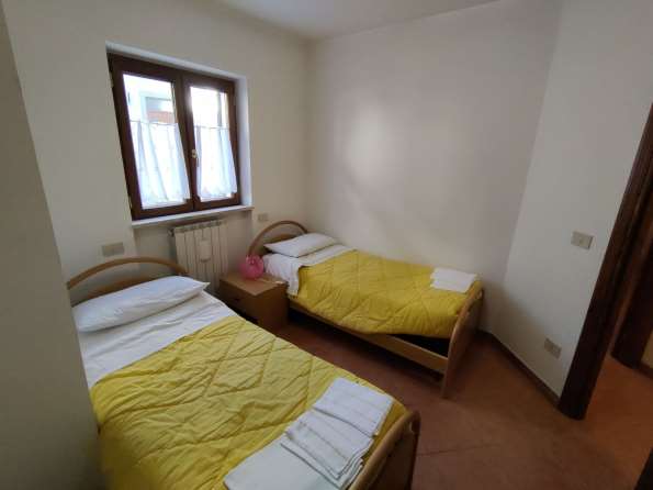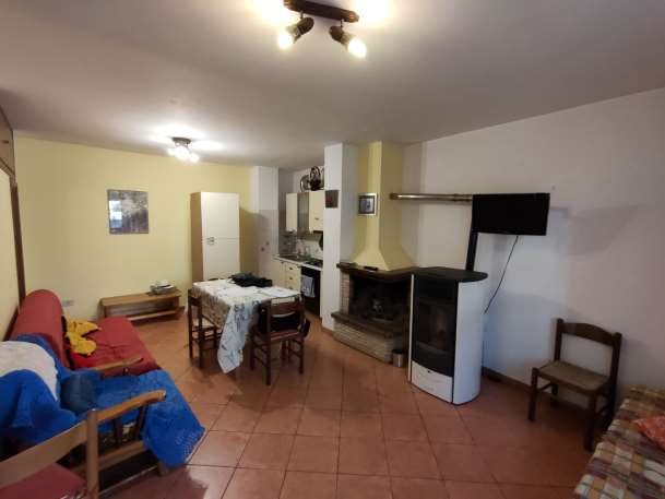 Appartamento al piano terra composto da soggiorno con angolo cottura, camino e stufa a pellet, n. 1 bagno, disimpegno, n. 2 camere da letto ed un ripostiglio sotto-scala, per una superficie utile netta calpestabile complessiva di mq. 57.10, corrispondente ad una superficie equivalente di mq. 55.90 e ad una lorda di mq 88.89.