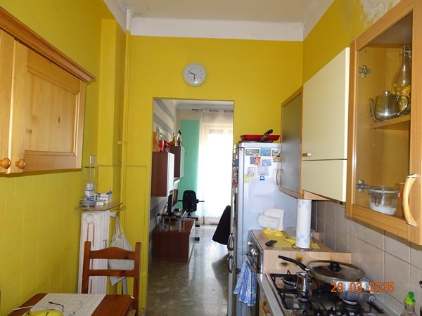 In un edificio condominiale, dotato di impianto ascensore, la piena proprietà del 100% di: alloggio al piano secondo (3° f.t.) composto da tre vani, cucina ed accessori; cantina al piano seminterrato: vano ad uso locale deposito; soffitta al piano settimo (8° f.t.): un vano ad uso soffitta.