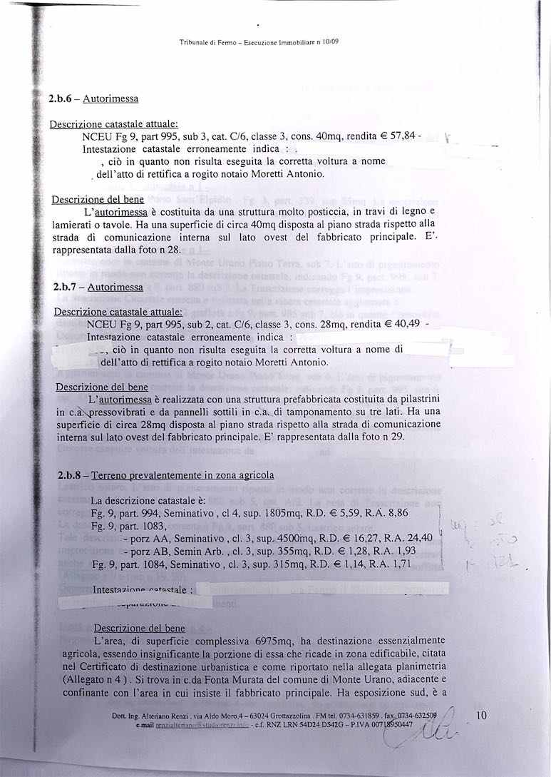LOTTO N.5: Terreno agricolo di mq 6.975 in Monte Urano, c.da Fonte Murata, descritto foglio 9 particella 994, qualità seminativo, cl.4, mq 1805, renditadomenicale 5,59, agraria 8,86; particella 1083 porz AA qualità seminativo, cl.3 mq 4500, rendita domenicale 16,27, rendita agraria 24,40, porz AB qualità semin arbor, cl. 3, mq 355, rendita domenicale 1,28, rendita agraria 1,93, particella 1048 qualità semin arbor, cl.3, mq 315, rendita domenicale 1,14, rendita agraria 1,71.