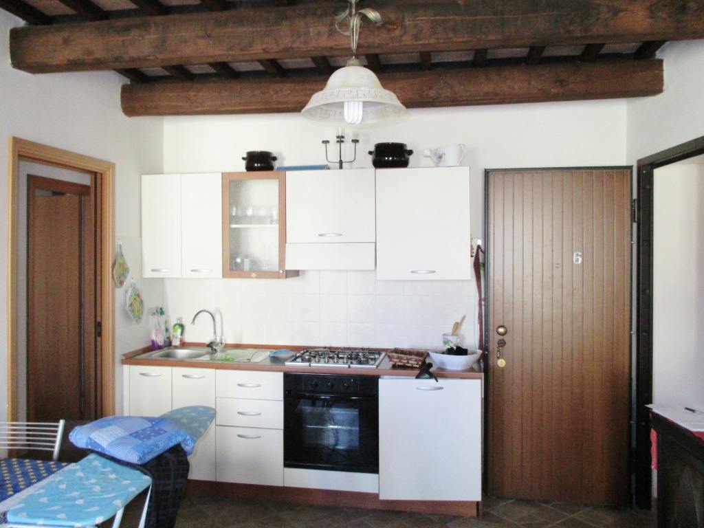 Appartamento mq. 76,20, piano primo, soggiorno con angolo cottura, disimpegno,servizio igienico e due camere.