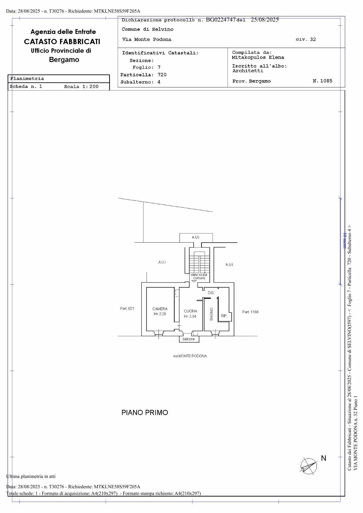 Quota intera nuda proprietà di appartamento al piano primo composto da ingresso/cucina, camera da letto, disimpegno, bagno, ripostiglio e piccolo balcone