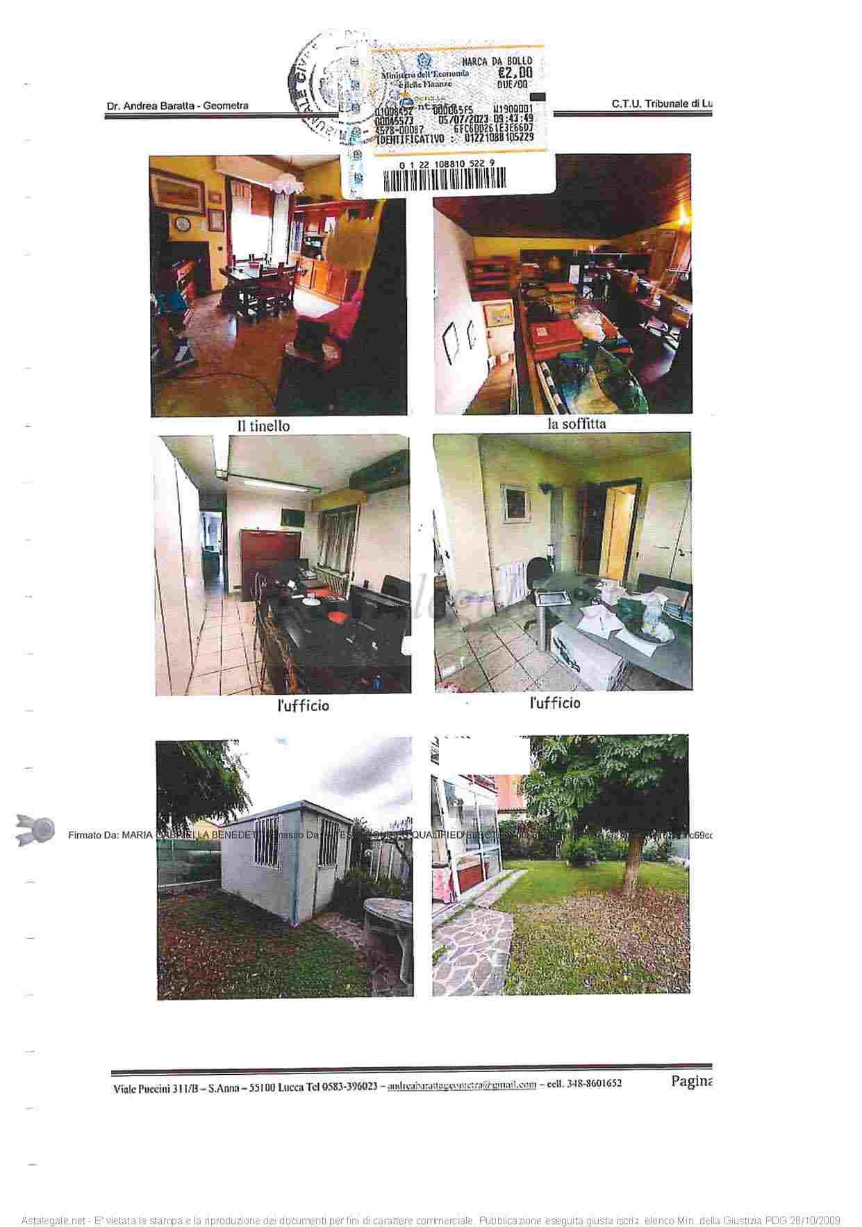 I diritti della piena proprietà per la quota 1/1 su immobile di civile abitazione e locali uso ufficio. Appartamento posto al 2 piano, composto da ingresso, tinello, cucina e soggiorno con terrazzi, disimpegno, w.c., oltre zona notte con disimpegno, tre camere e bagno. Dal soggiorno, a mezzo scale, si accede alla soffitta. Al P.T. si trovano locali uso ufficio con altezza utile di ml. 2.46 costituiti da tre vani oltre veranda chiusa e bagno. Il bene gravato da diritto di abitazione.