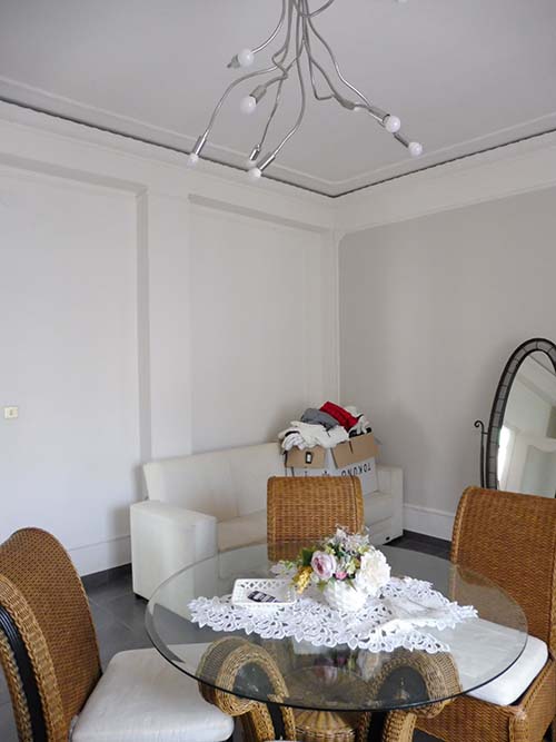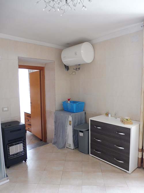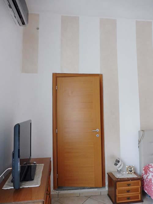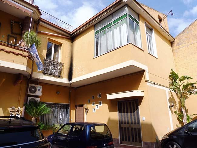 Porzione di fabbricato interclusa su due livelli (piano terra e primo) ubicata in Casapulla alla Via IV Novembre n.55, composta al piano terra da due vani (camere), disimpegno, ripostiglio e cabina armadio (realizzaticon chiusura dell'antistante portico); al piano primo da disimpegno, due vani e due ripostigli.Il bene è privo di accesso dal cortile comune e dalla strada, nonché del collegamento verticale tra i due piani (corpo scala è stato edificato sul cortile comune, come da relazione di stima in atti)