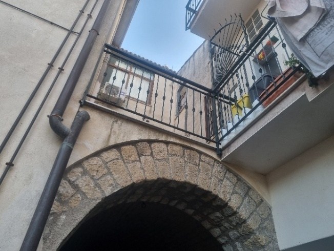 Appartamento con sottotetto pertinenziale. L’appartamento, con esposizione luminosa a Sud-Ovest, al primo piano, è costituito da n. 2 vani ed accessori, ovvero ingresso/corridoio, soggiorno/cucina, camera e bagno. E' dotato di balcone con affaccio su Corso Umberto I e di piccolo terrazzo sull’androne. Il sottotetto è completamente allo stato grezzo e necessità di interventi di riparazione del manto tegole. Attualmente il lotto risulta libero da cose e persone.