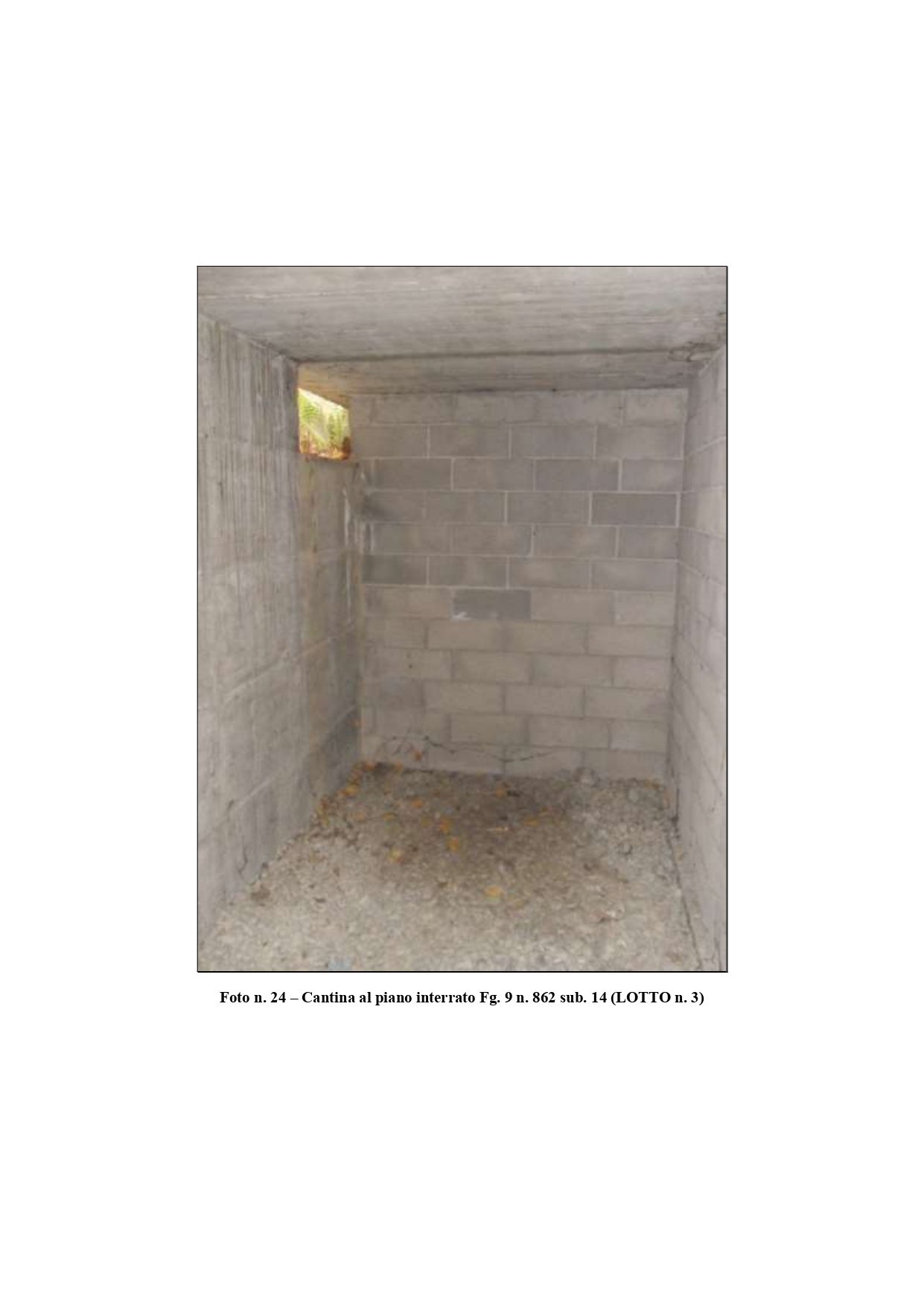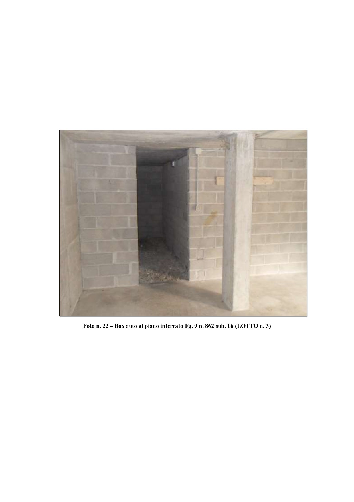 Al Foglio 9 mappale 862 sub. 16 è censito un unico locale ad uso box auto con superficie lorda di mq. 30,00.Al Foglio 9, mappale 862, sub. 14 è censito un unico locale ad uso cantina: con superficie lorda di mq. 10,00.