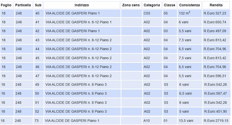 Quota 1/1 della piena proprietà immobile situato nell’immediata periferia del centro abitato del Comune di Sant’Arcangelo (PZ), in Via Alcide De Gasperi, snc, zona servita dai mezzi pubblici e vicina alle attività commerciali di primaria necessità, distinto in Catasto Fabbricati al foglio 18 p.lla 248, piano S1, Cat F/4.