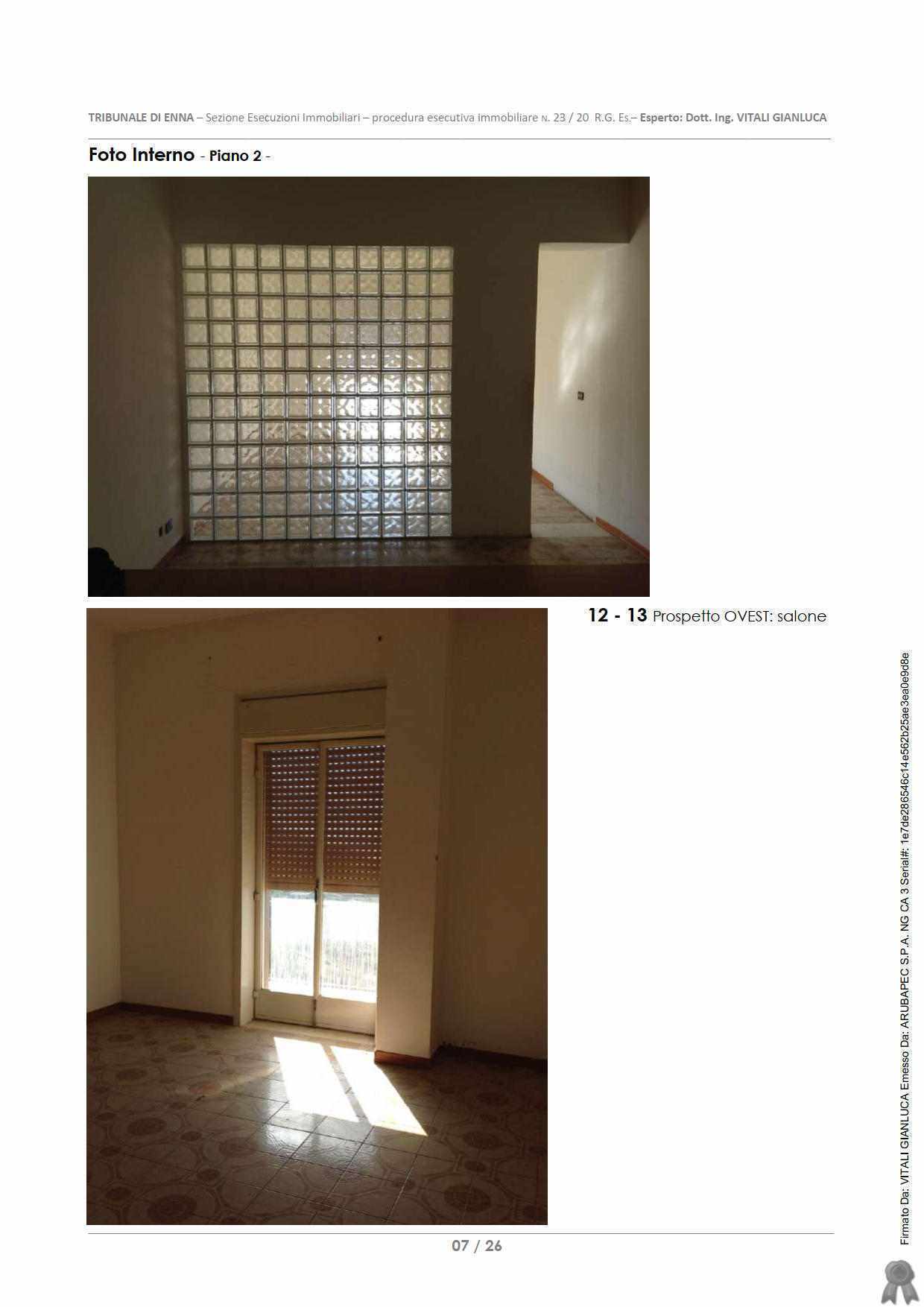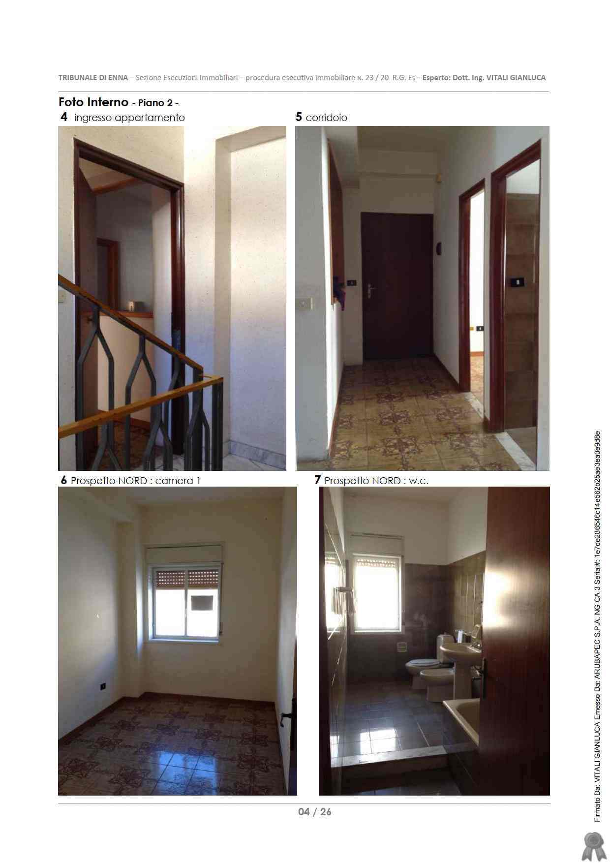 LOTTO A) APPARTAMENTO PER CIVILE ABITAZIONE di tipo economico, ubicato in zona periferica sulla S.P.23b, in catasto al Foglio 62, Part 746, Sub 7, Piano 2, Cat A3 (abitazioni di tipo economico), Classe 3, Vani 6, Superficie 118 m2, Rendita 263,39.