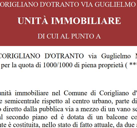 Unità immobiliare a CORIGLIANO D'OTRANTO via Guglielmo Marconi, della superficie commerciale di 53,80 mq per la quota di 1000/1000 di piena proprietà