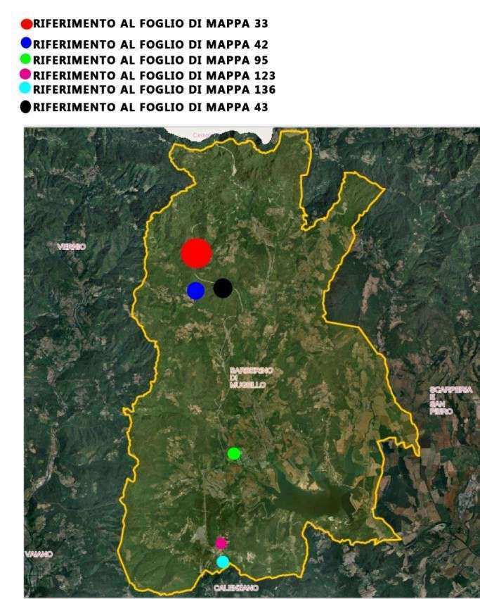 Piena proprietà di vari appezzamenti di terreno agricolo e boschivo, per complessivi mq 54.494