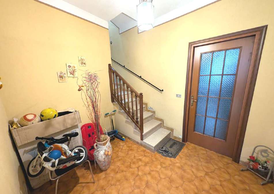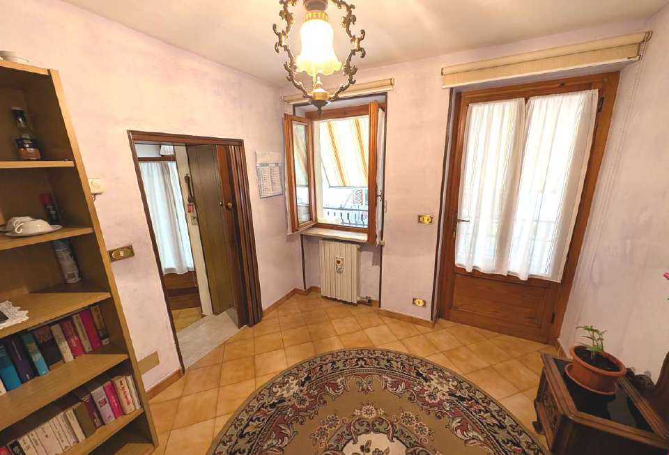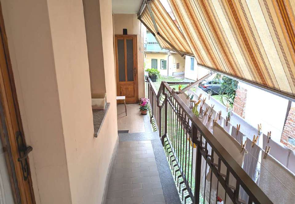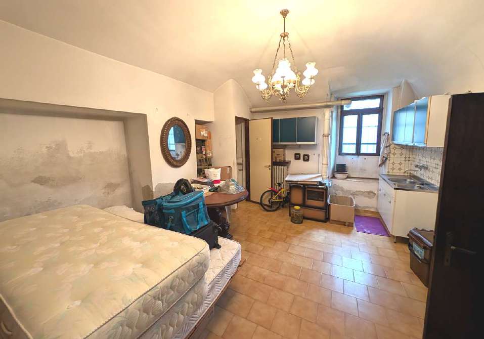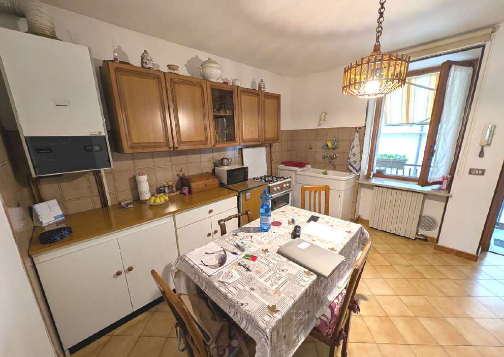 Alloggio su due piani (terreno e primo) posto in contesto di case “di corte”, così composto: al p.t. - ingresso e vano scala, cucina/soggiorno attualmente adibito a deposito, bagno di servizio; al p.1 - locale soggiorno/cucina, camera da letto, disimpegno, bagno, balcone con piccolo wc esterno. Autorimessa.