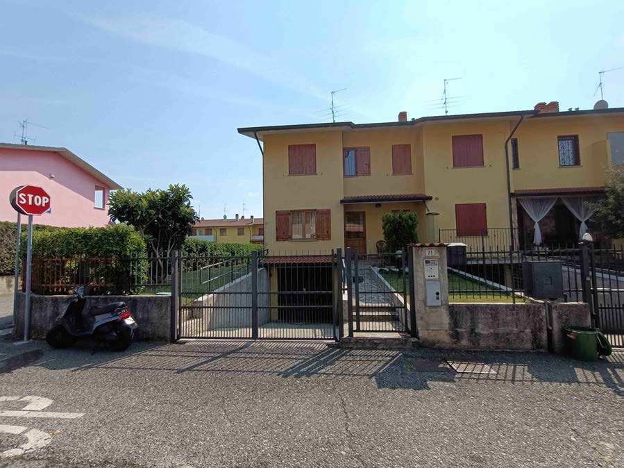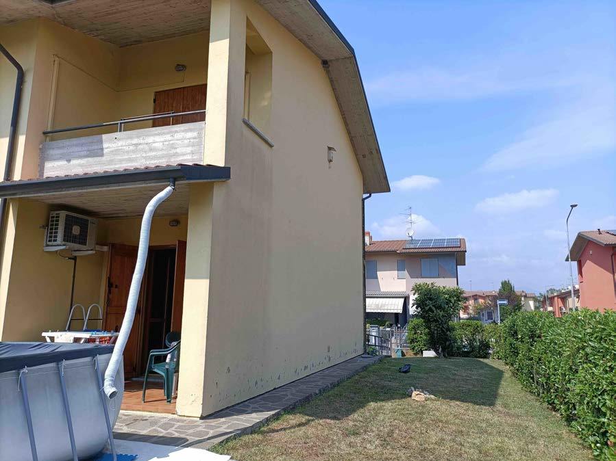 Piena proprietà di villino di testa in complesso immobiliare a schiera distribuito su tre livelli con area esterna esclusiva e autorimessa