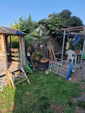 Due unità abitative (una al piano terra ed una al piano primo), oltre deposito (su tre piani fuori terra) ed ampia area di corte esclusiva L’appartamento al piano terra (part. n. 47 sub 2 -Per la q...