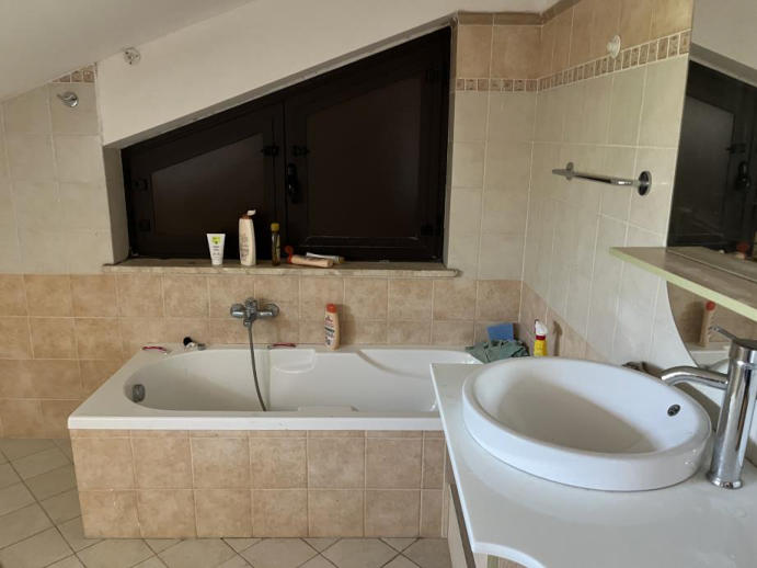 Unità immobiliare costituita da piano seminterrato, piano terra rialzato e piano primo sottotetto con annesso giardino di pertinenza esclusiva, classe 3, consistenza 7 vani, superficie catastale totale 116 mq, totale escluse aree scoperte 116 mq, rendita euro 379,60.