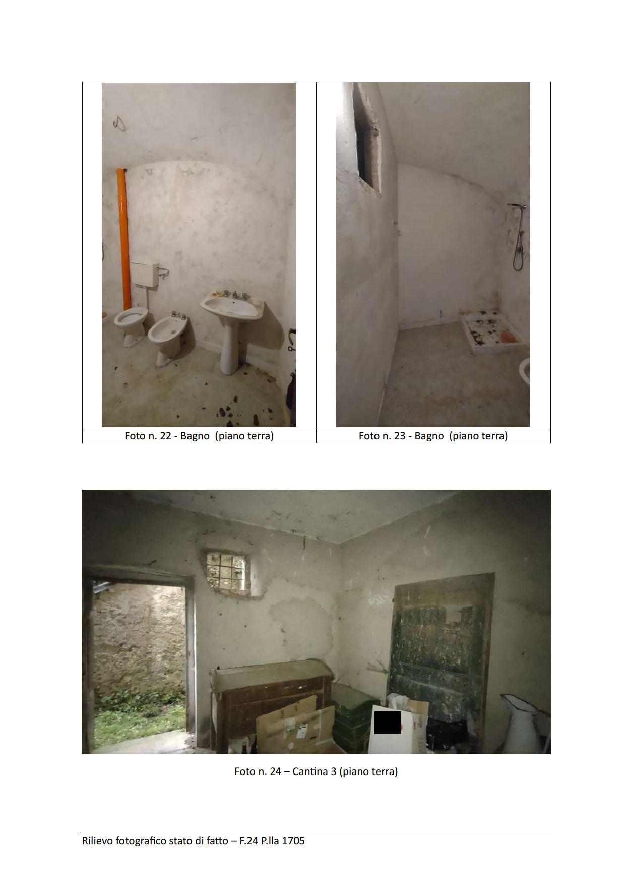 Abitazione p. T-1° Fg. 24 Part. 1705 / Sub. 2 - 3, mq. 164. Stalle piano Terra Fg.24 Part. 1548/ Sub. 1 - 2, mq.37.