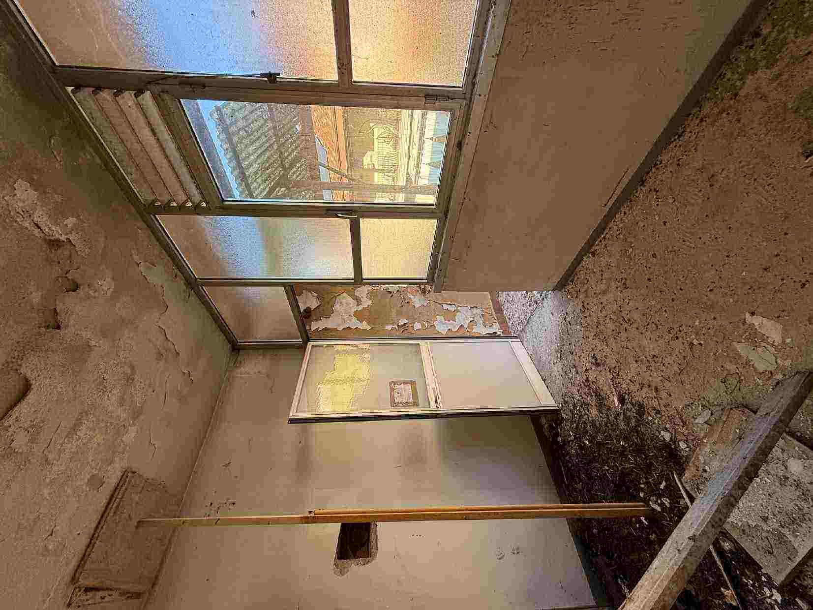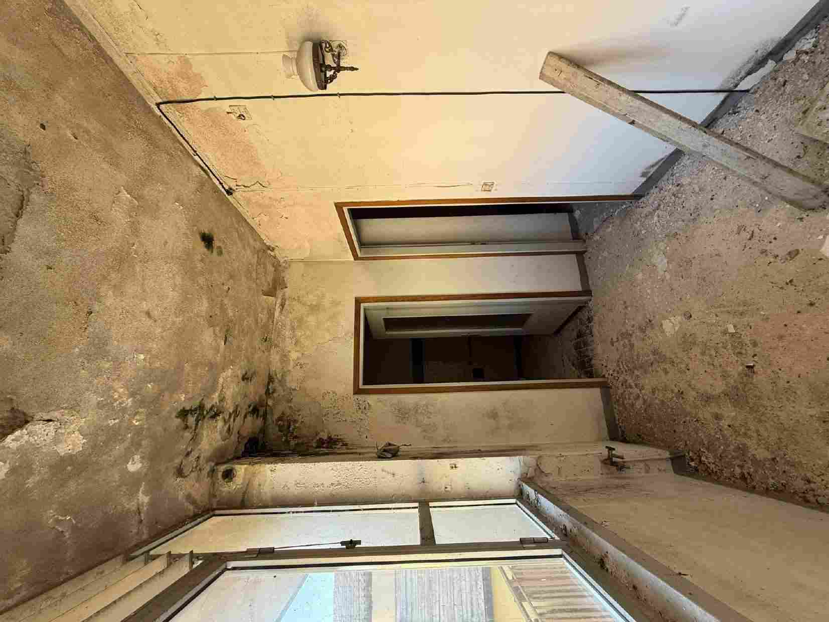 Appartamento bilocale ad uso abitazione, in stato di totale abbandono, posto al primo piano di fabbricato a corte. Composto da ingresso disimpegno, soggiorno con angolo cucina, camera da letto, bagno e balcone.