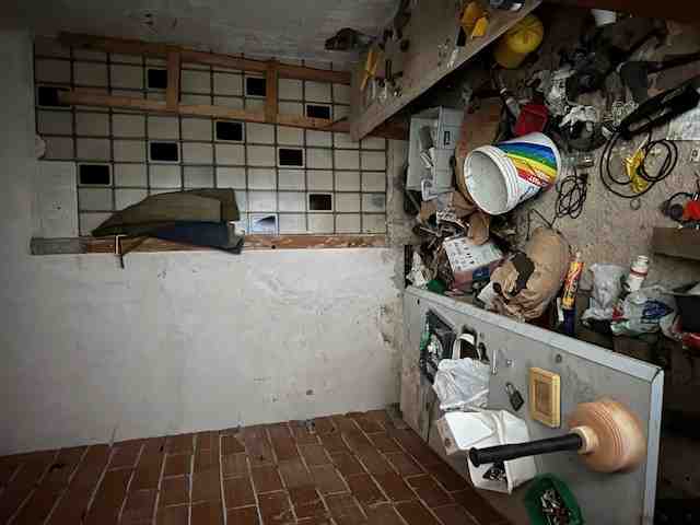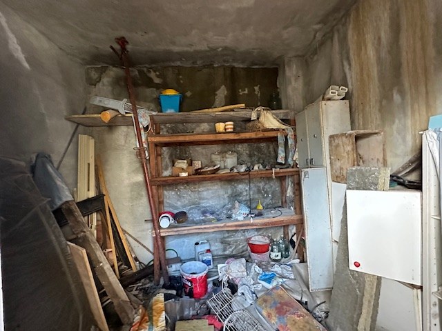 Nel complesso immobiliare denominato "Fonte del Faggio": porzione di fabbricato ad uso civile abitazione posta al piano seminterrato e costituita dalla fusione di fatto di due unità immobiliari così composta: ingresso su soggiorno, cucina, due camere, due locali ripostiglio, un bagno privo di sanitari, terrazzo e magazzino abusivo esterno di mq. 12;annesso e pertinenziale terreno agricolo adibito ad orto ed in parte a cortile della superficie di mq. 560