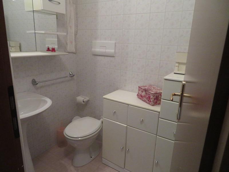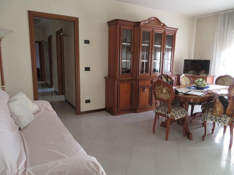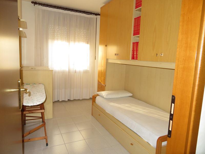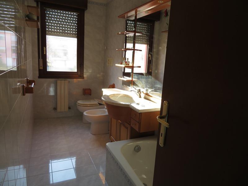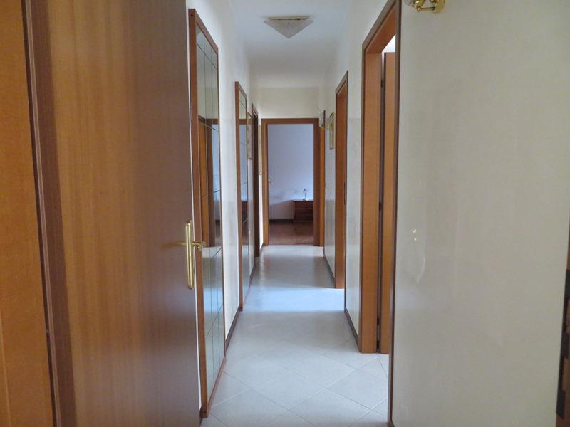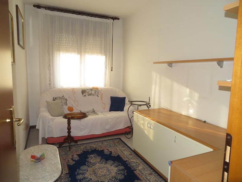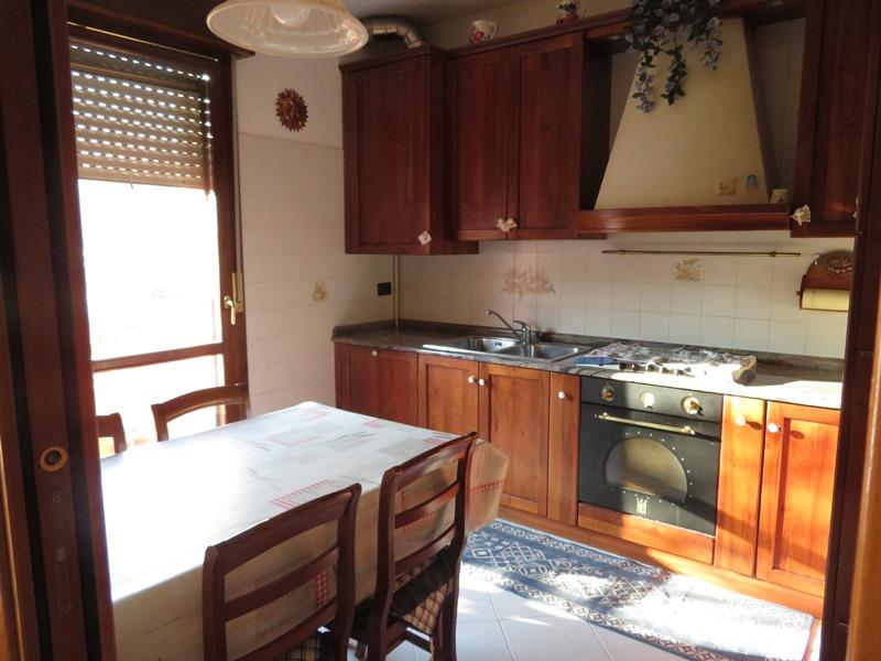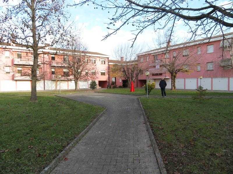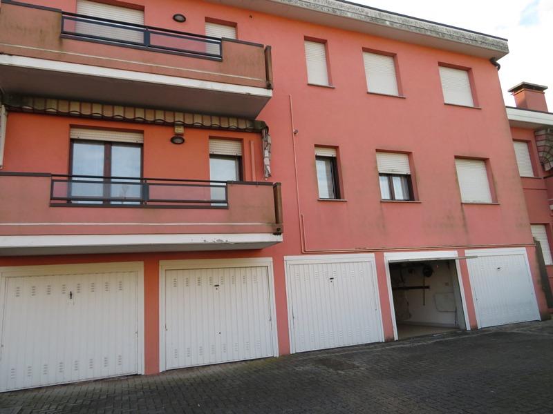 Appartamento al p. primo con garage al p. terra, in condominio, senza ascensore. L’ingresso si immette in un soggiorno dal quale si accede alla cucina abitabile con ripostiglio; sia dal soggiorno che dalla cucina si accede al terrazzino; due camere singole, un bagno cieco e uno finestrato e una camera matrimoniale. L’accesso avviene tramite cancello carraio attraverso lo scoperto comune. Libero.