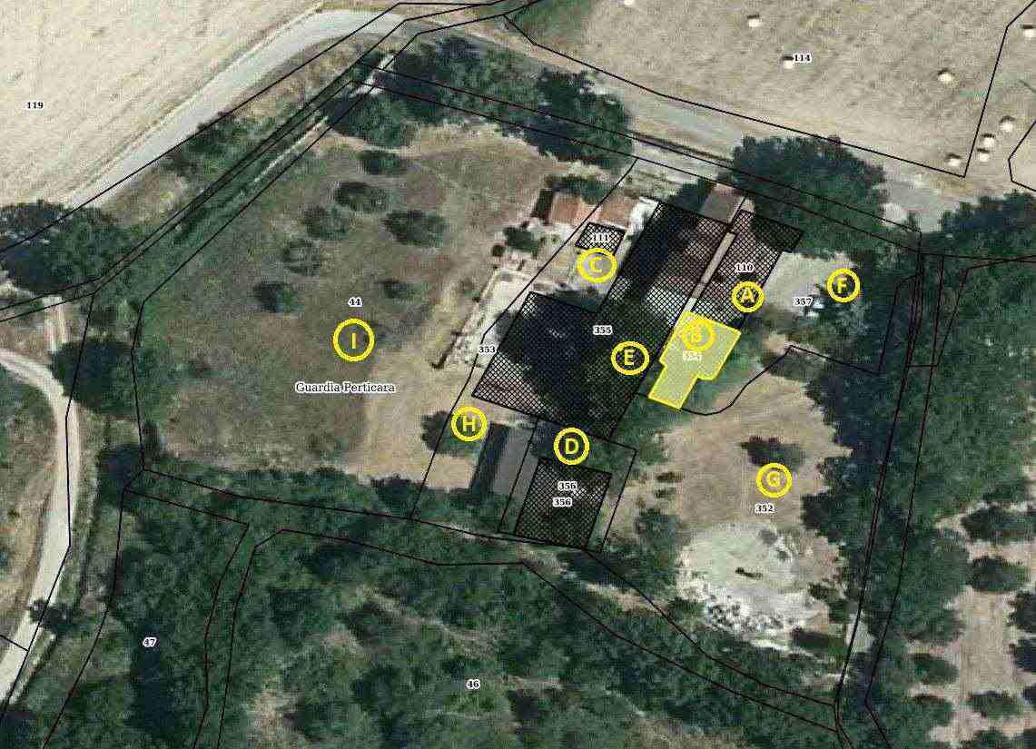 Piena ed intera proprietà quota 1/1 di villetta con altri fabbricati e terreni ubicati nel Comune di Guardia Perticara (Pz) alla C.da Cerzeto n. 21, riportati nel:- C.F. al foglio 39:a) p.lla 110 fabbricato principaleb) p.lla 354 ampliamento fabbricato principalec) p.lla 111 depositod) p.lla 356 prefabbricato in legnoe) p.lla 355 costruendo fabbricato in ca- C.T. al foglio 39:f) p.lla 44 di mq 2606g) p.lla 352 di mq 1518h) p.lla 353 di mq 503i) p.lla 357 di mq 495