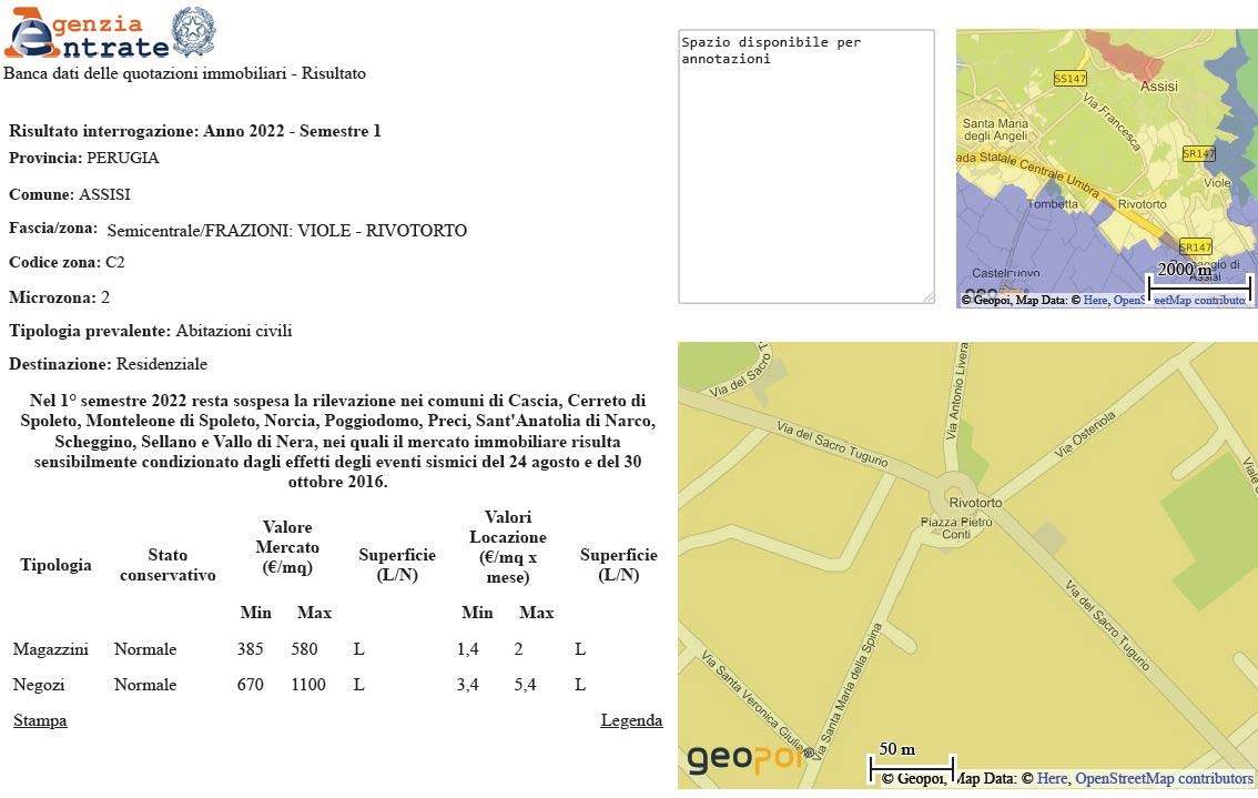 Lotto 1: Immobile sito in Comune di Assisi (PG), Frazione Rivotorto, Via S. Maria della Spina, identificato al N.C.E.U con i seguenti dati: foglio 143, particella 10, subalterno 22.