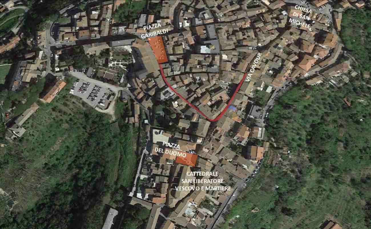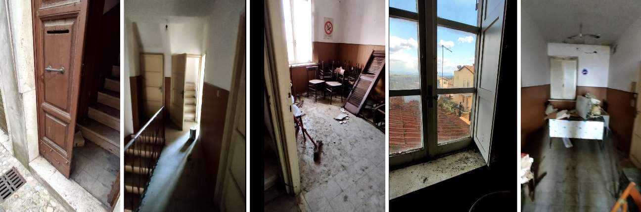 L'immobile si trova in Via Cavour n.40, Magliano Sabina (RI) da cui si sviluppa una scalinata rettilinea con arrivo al Piano Primo. Da qui, attraverso un disimpegno centrale, si connettono un Ripostiglio, una Sala con doppio affaccio ed un piccolo Bagno ricavato nel sottoscala. Proseguendo con una scala ad U fino al Piano Secondo troviamo un'altra Sala, su cui affaccia direttamente un Bagno, a cui si accede mediante n.2 scalini. Sul fronte Nord-Ovest troviamo l'accesso alla terrazza esterna.