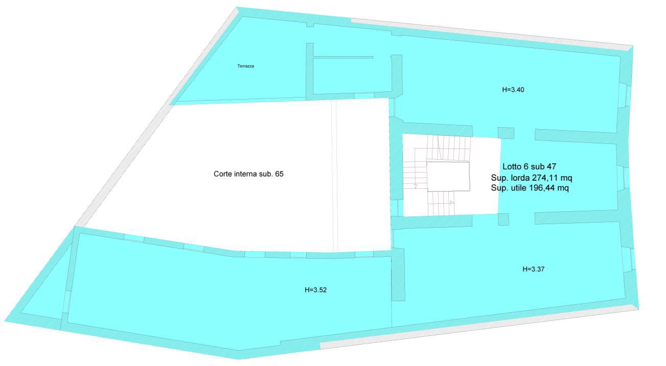 Porzione di fabbricato in costruzione ubicato a Sassari (SS) – Piazza Emiciclo Garibaldi 22 Identificato al catasto Fabbricati – Fg. 109, Part. 3205, Sub. 47, Piano 3°, Categoria F3, superficie utile totale calpestabile pari a circa mq 215,35, compresa quota indivisa dell’area comune (condominiale) costituita da corte e porticati, distinta in NCEU al Fg. 109, Part. 3205, Sub 65, cat. F/3, da intendersi parte comune dell’intero fabbricato distinto alla particella 3205.