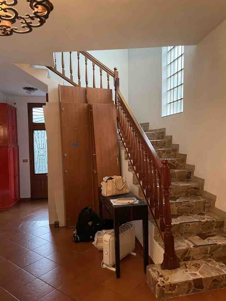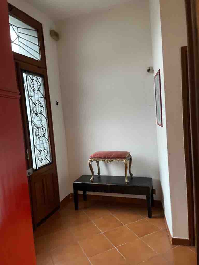 Casa uso abitazione su due piani, composta al piano terreno da ingresso e soggiorno, due ripostigli, tinello con cucinino, vano centrale termica, bagno; al piano primo da disimpegno, camera 1, zona armadiata, camera 2, camera 3, bagno, terrazzo, piano sottotetto utilizzabile come ripostiglio, superficie lorda complessiva mq 177,5; box doppio; terreno.