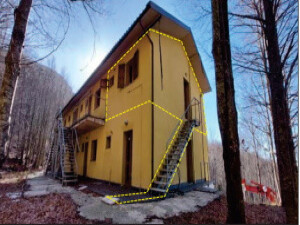 Piena proprietà di appartamento a piano primo di una palazzina residenziale con accesso indipendente, composto da zona giorno con angolo cottura, camera armadi, disimpegno, camera e wc, oltre balcone e corte esclusiva al piano terra, sup. equivalente mq 53,00, con annesso box auto sup. equivalente mq 24,00 al piano seminterrato. Libero. Si rimanda all'Avviso e alla Perizia per ogni specifica