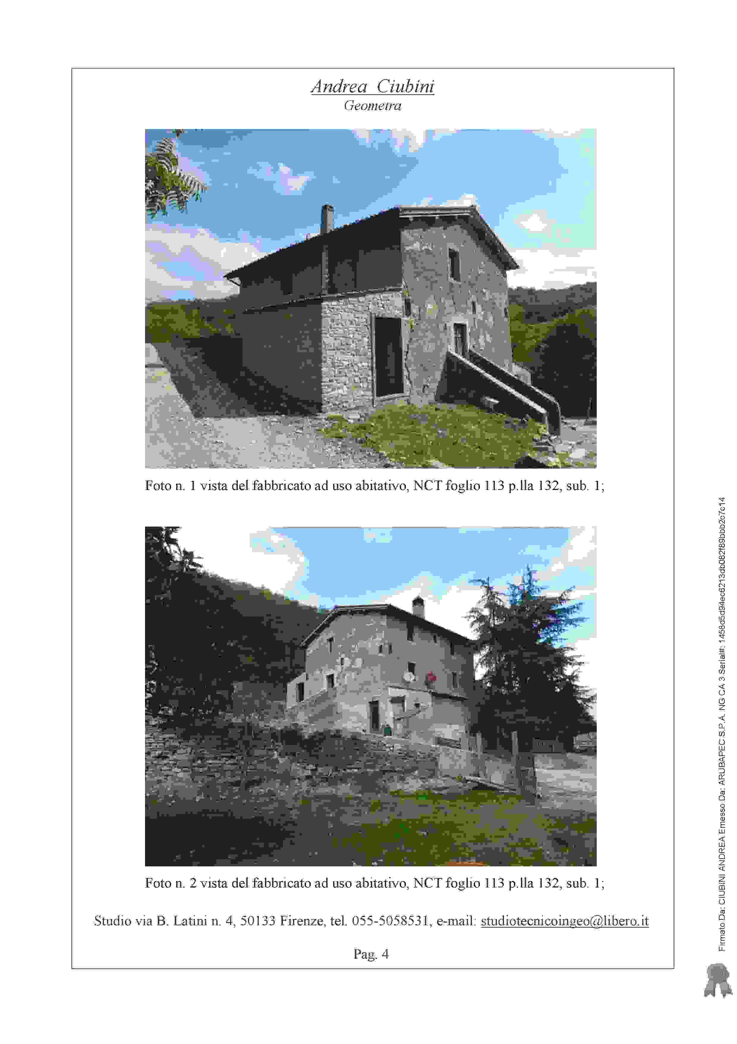 Abitazione su 3 livelli, resede di pertinenza e resede a comune, al piano seminterrato 2 vani ripostiglio, w.c., ulteriore locale; al piano terreno cucina, soggiorno, un altro vano, un ripostiglio e resede esterno; al piano primo 3 camere, 2 bagni e guardaroba. U.i. fienile/deposito su 3 livelli con resede di pertinenza e resede a comune, piano seminterrato 2 vani; piano terra 5 vani, una terrazza; piano primo un locale. U. i. laboratorio un piano ed un vano. Appezzamenti terreno di circa 3 ettari.