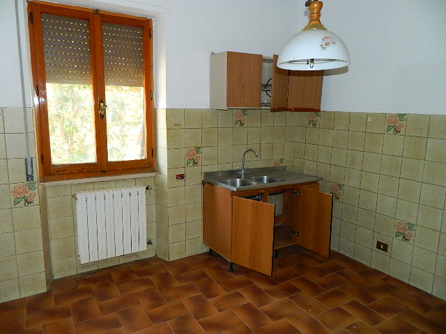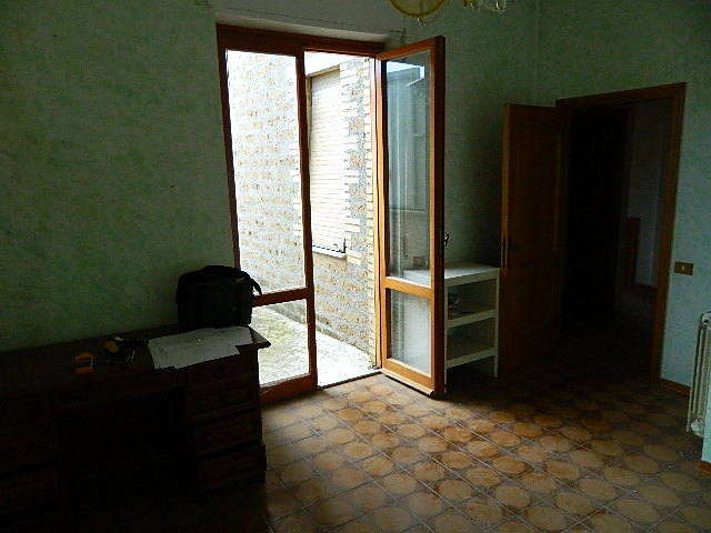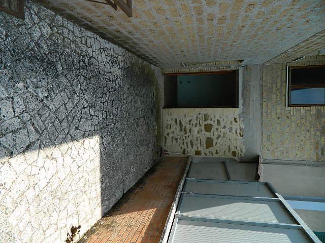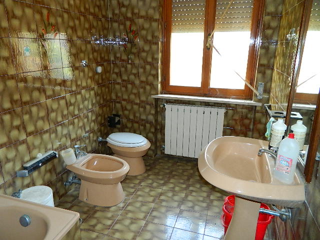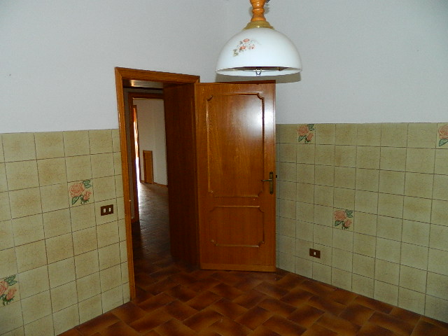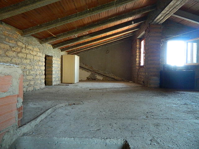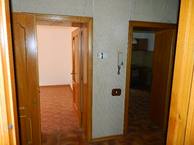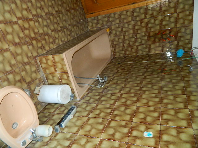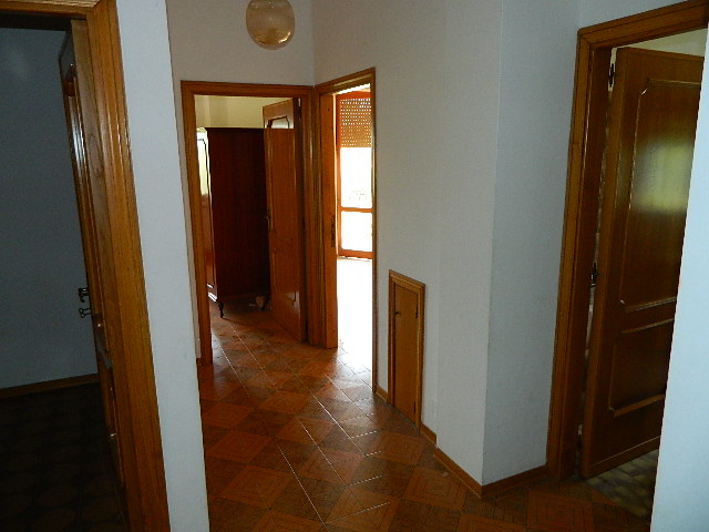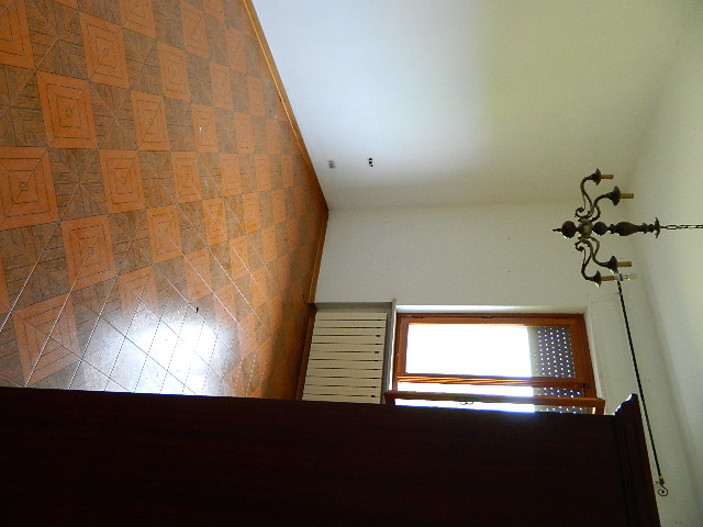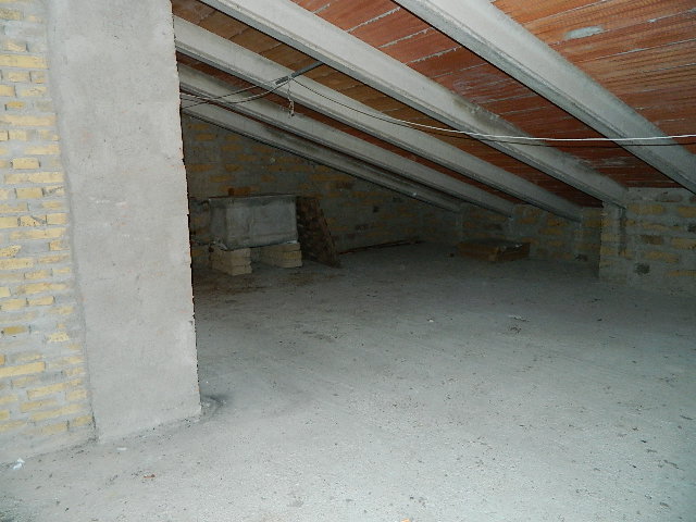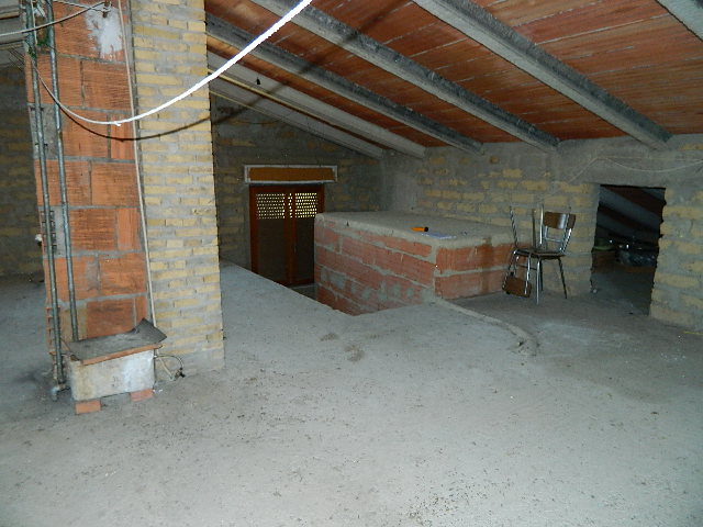 Primo piano, soffitta, con fondo e garage al piano sottostrada e piano terra, accesso alla corte esclusiva. Composto dadisimpegno, sala con balcone, cucina, altro disimpegno, bagno, due camere di cui una con balcone, ripostiglio, accesso al lastrico solare di circa 25mq. Scala interna per la soffitta formata da locale sottotetto al grezzo. Al piano sottostrada locale magazzino. Al piano terra scale scendono ai locali composti da corridoio, bagno, caldaia, fondino e vano garage con 2 porte metalliche.