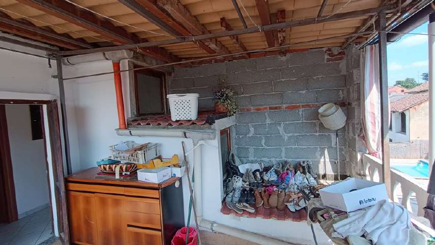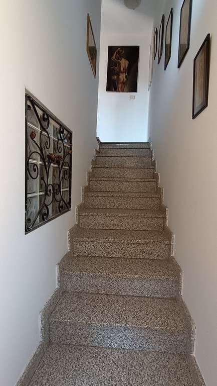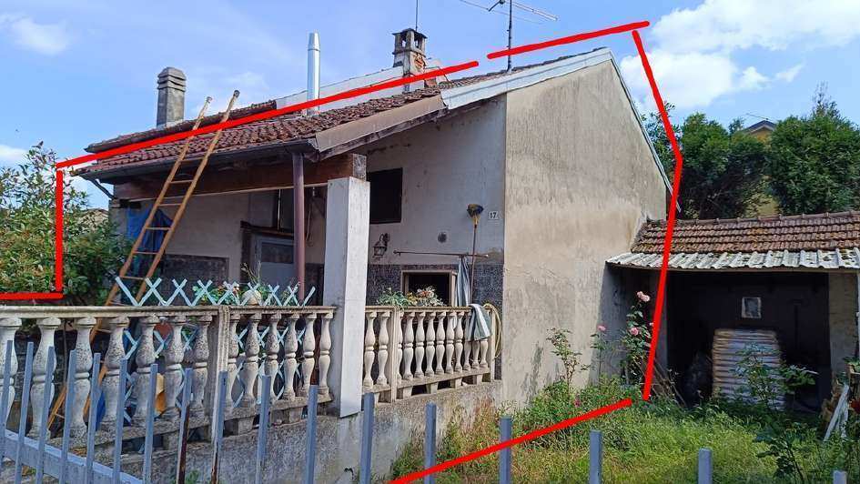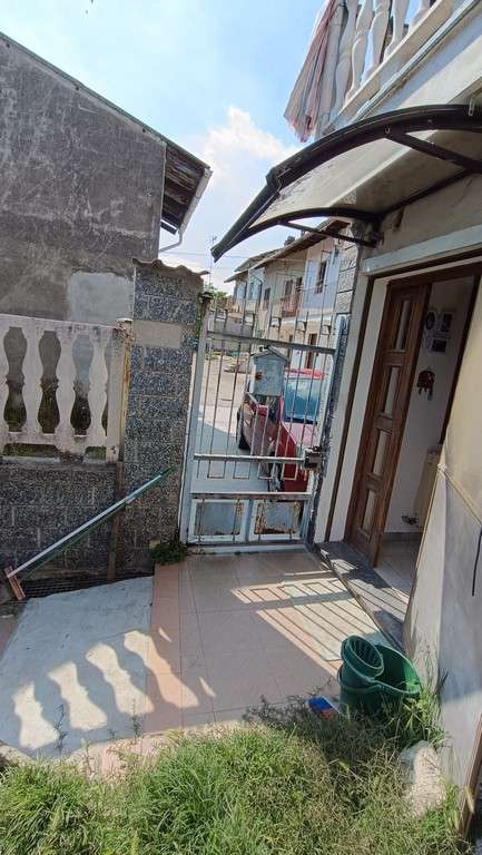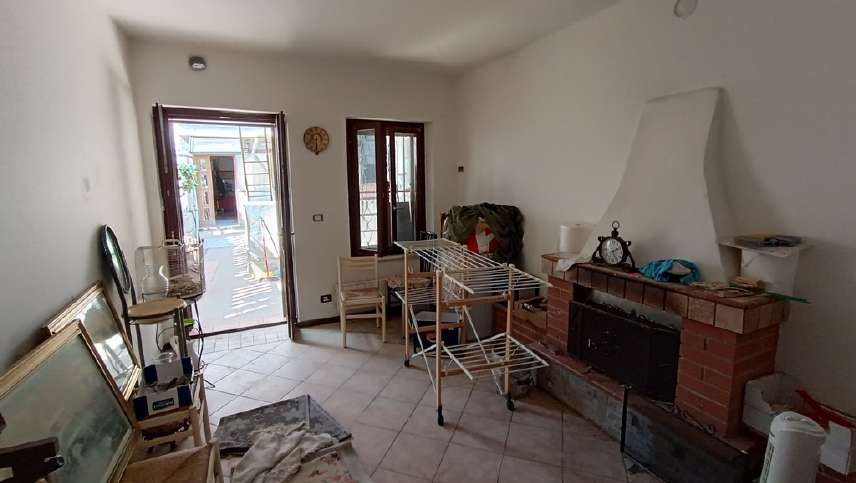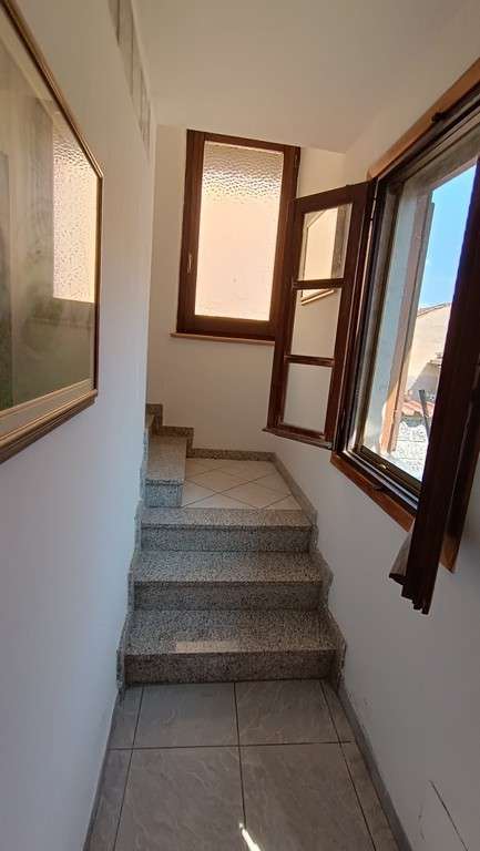 Fabbricato indipendente posto all’estremità di una manica di altre abitazioni; al piano seminterrato vi è un deposito (utilizzabile anche come autorimessa), al piano terra l’ingresso dell’abitazione, la scala di salita al piano superiore, un ripostiglio, un bagno e la cucina; al piano superiore un disimpegno, una camera ed un terrazzo; al piano terra, separato dall’abitazione tramite un piccolo giardino, altro locale deposito con porticato ed esternamente scala a chiocciola di salita al sottotetto.