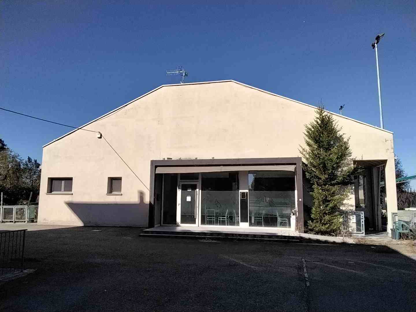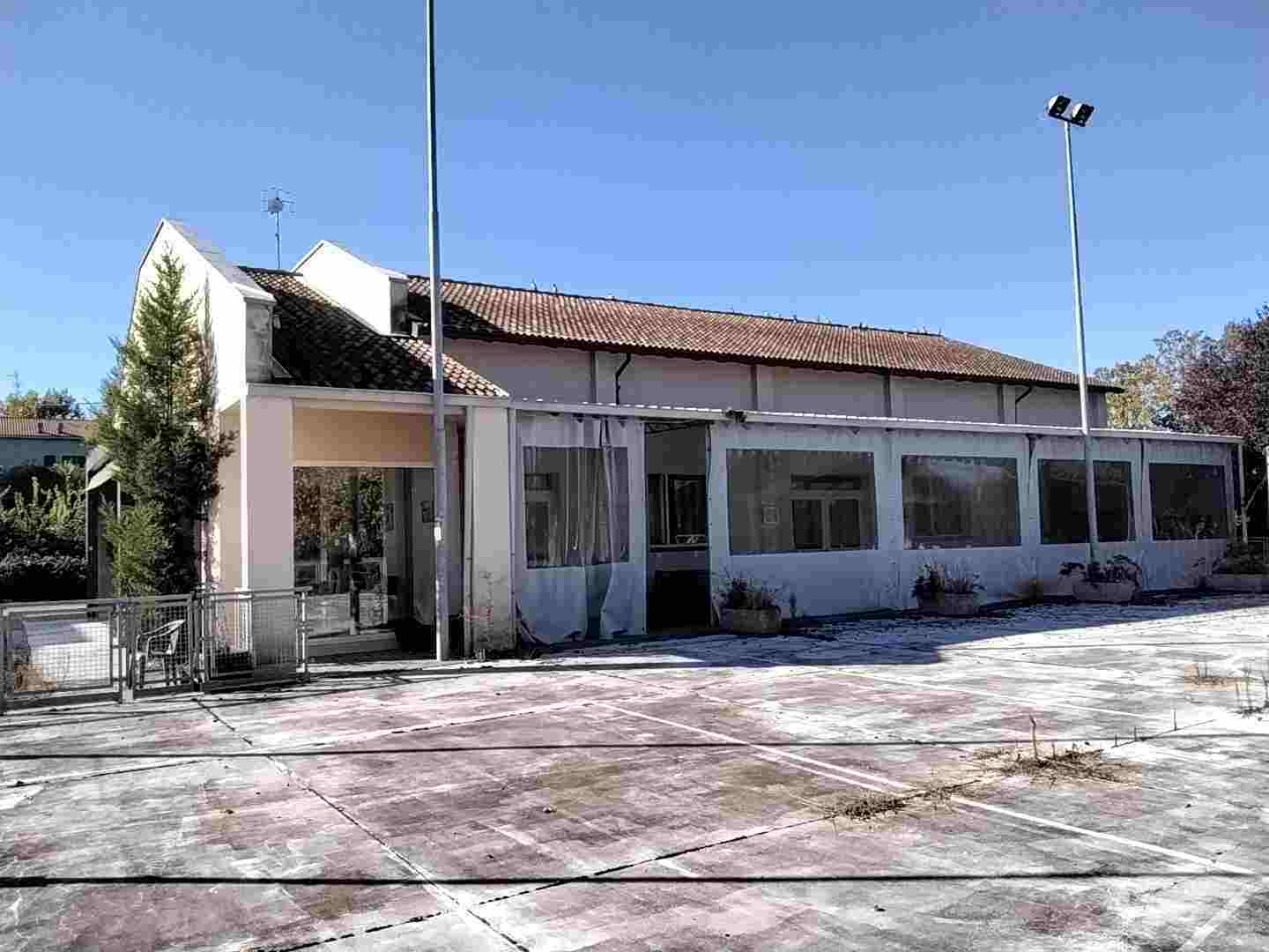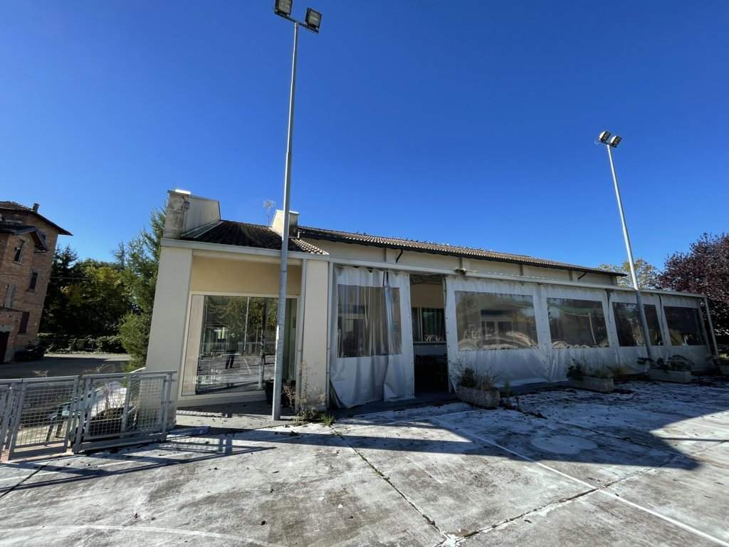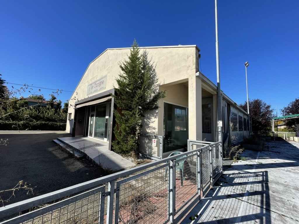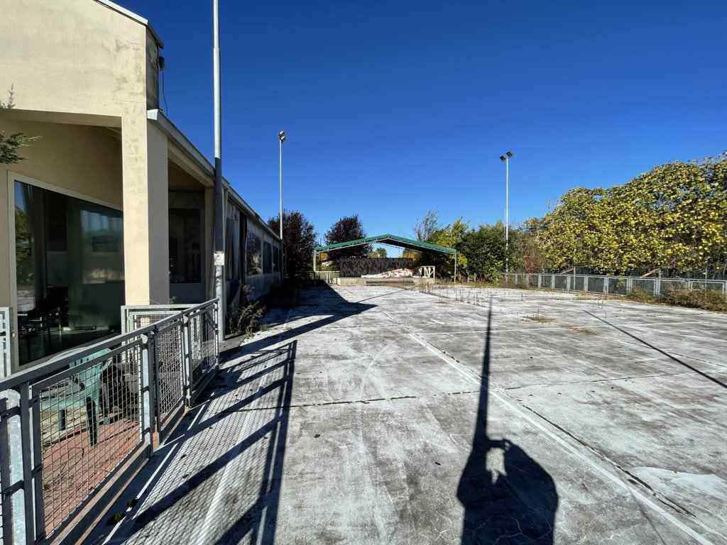 Piena proprieta' di fabbricato isolato con destinazione commerciale (adibito a ristorante/pizzeria/bar) sviluppantesi al piano terra e sovrastante porzione destinata a sottotetto con annessa area cortiliva di pertinenza esclusiva su quattro lati. Superficie commerciale fabbricato pari a mq. 319; corte esclusiva pertinenziale (in parte adibita a pista polivalente) di superficie catastale pari a mq. 1.513.L'immobile verra' consegnato libero a cura del Custode Giudiziario.