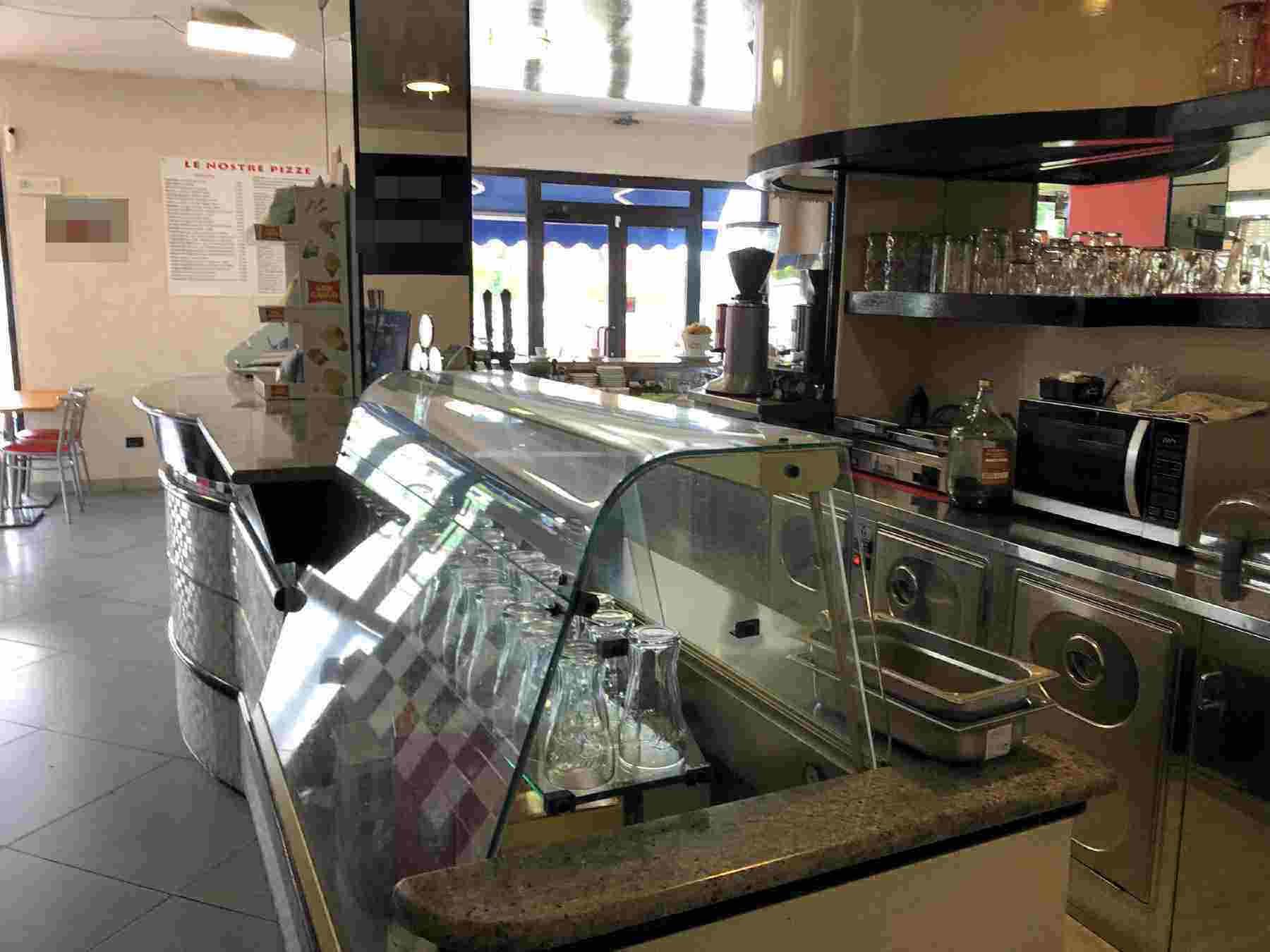 Lotto unico - locale commerciale (bar) al piano terreno, con retro, disimpegno, tre servizi igienici e spogliatoio, con annessa area pertinenziale sui lati est e sud. Superficie commerciale complessiva: Mq. 136