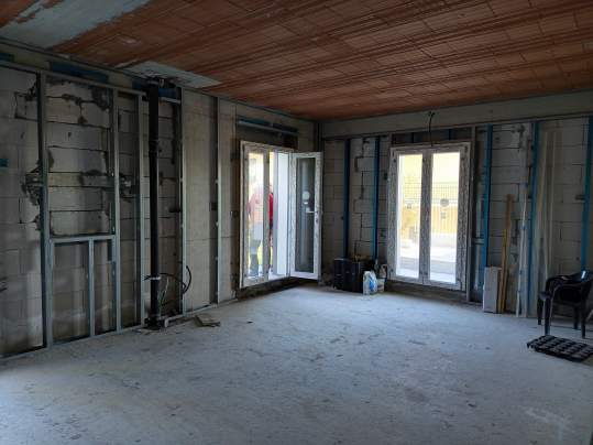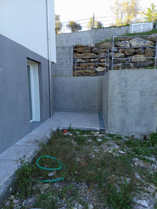 Appartamento posto al piano terra, in fase di costruzione e da ultimare essendo definito allo stato attuale solamente l'esterno della muratura e da completare totalmente la parte interna sia della muratura perimetrale che di tutti i localo interni come da progetto per essere reso abitabile; sono stati posti in opera e completati solamente i serramenti esterni. Con annesso garage pertinenziale.